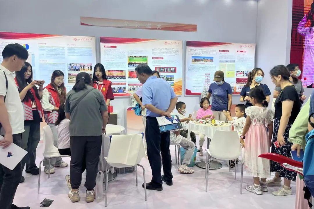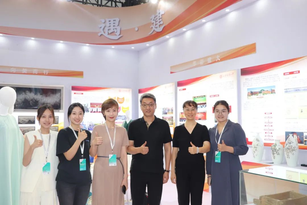 我校受邀参与本次博览会,由艺术学院策划承办,设立了84平米的“遇建”主题展馆,主题取自“遇见”,有相遇、相识、相知的美好寓意。展区设有华彩建大、向美而行、艺创未来三大版块,通过建大的发展沿革,艺术学院的专业特色及学校文化育人、实践育人的特色品牌,客观呈现出学校学科建设、人才培养等方面的主要成果。