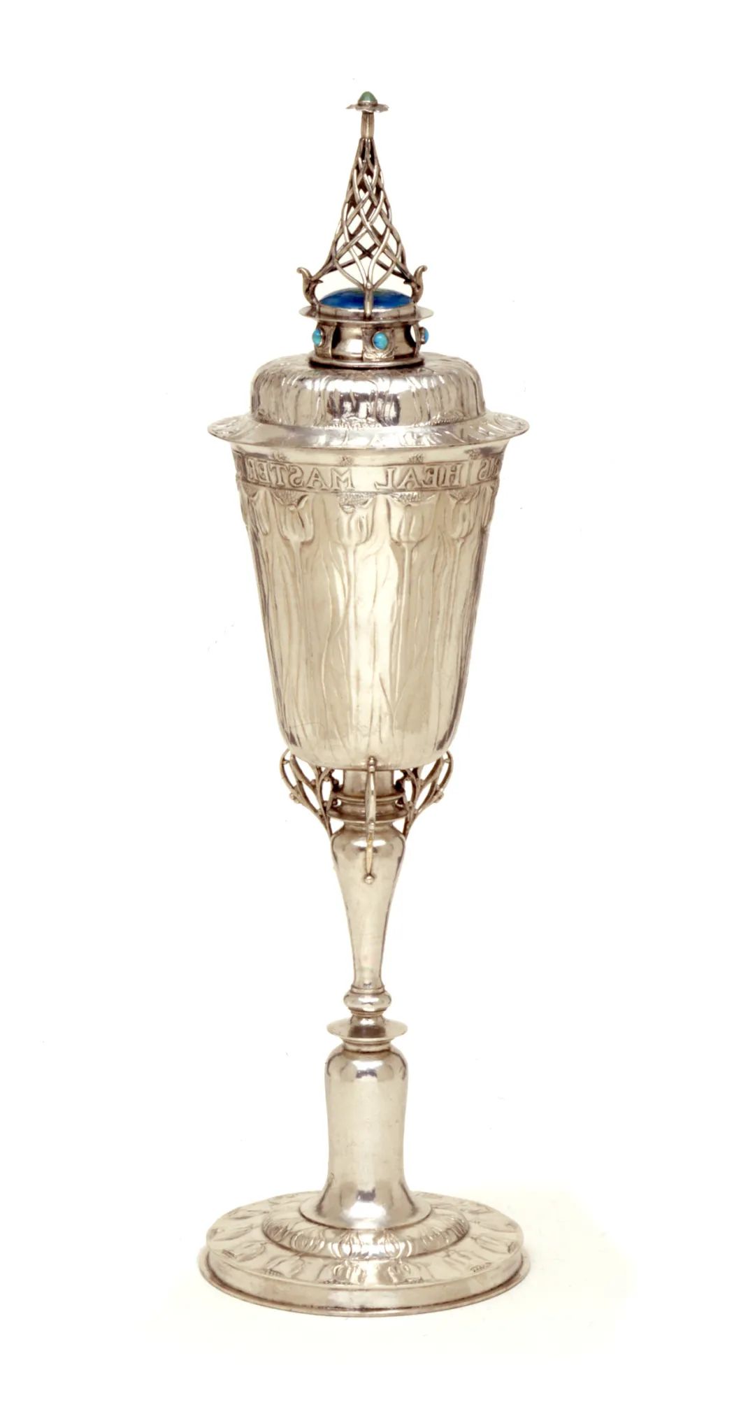 画师-染色师之杯,1900-1901年,银,金,珐琅,抛光绿松石,查尔斯·阿什比设计;威廉·波塞尔制造;为手工艺行会而作,V&A博物馆。