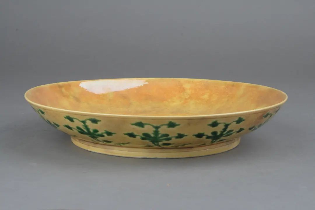 清道光黄地绿彩折枝花卉盘,河北博物院藏。