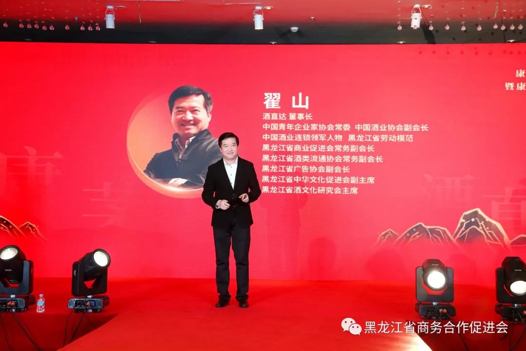 黑龙江省华龙酒直达集团董事长翟山致欢迎词:对莅临本次活动现场的各位领导与嘉宾表示热烈的欢迎和衷心的感谢。并介绍了酒直达未来发展计划和诗仙产品系列,酒直达集团与康匠酒业强强联手,树立起“有酒直达就能把康茅酒送到家”的美好使命,最后预祝本次活动圆满成功。