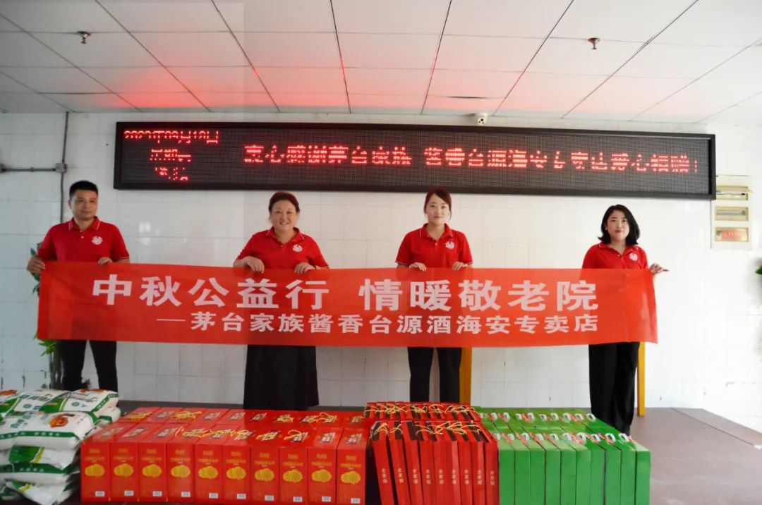 金秋九月,丹桂飘香。为弘扬中华民族敬老、爱老的传统美德,让海安胡集老年人度过一个温馨愉快的中秋佳节,在中秋节来临之际,海安茅台家族酱香台源专卖店负责人及员工来到胡集敬老院进行节日慰问,为院内老人送去月饼、水果等慰问品,把温暖送到老人们的心坎上。