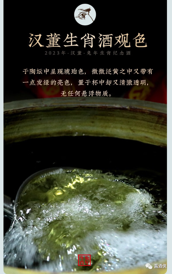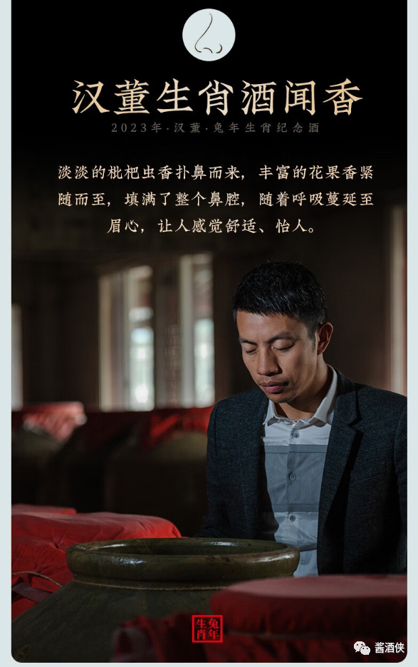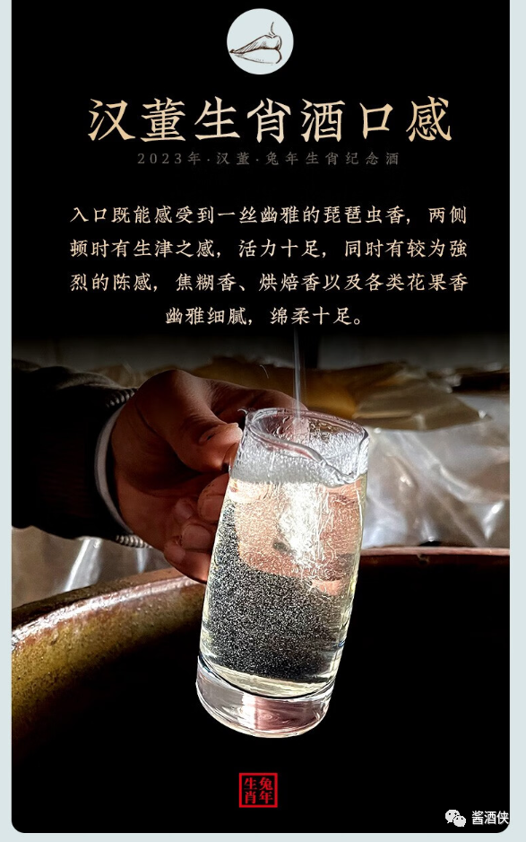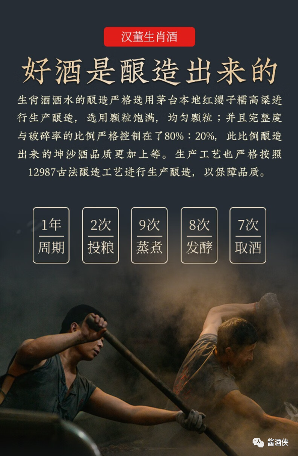茅台镇核心产区,坚持纯粮酿造,严选茅台镇本地优质红缨子糯高粱作为原料,优质小麦制曲,八年窖藏,加入十五年以上老酒勾调,酒体协调饱满,口感柔顺,空杯留香持久,汉董酒从选粮、制曲、蒸馏、勾调、保存、历时一年酿造后,放入酒窖窖藏8年。 汉董酒口感不错,质量也很不错,出自贵州汉董酒厂,其酒厂位于茅台镇酱酒核心产区,多年来一直潜心研究平价酱香酒,这款酒由师承李兴发的曾传政亲自勾调,赋予了它优良的品质,然而一款好酒不仅仅取决于酿酒师傅的技艺,还取决于原料和水源。
