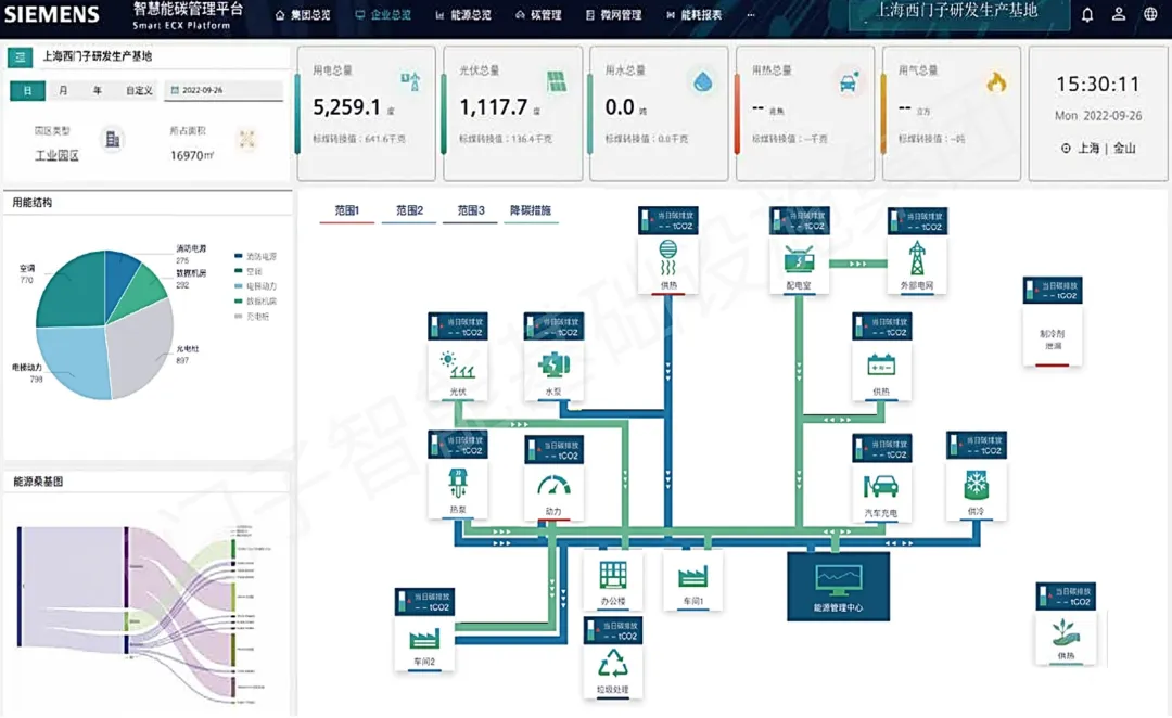 西门子Smart ECX 智慧能碳管理平台基于物联网和云计算、人工智能等技术,帮助企业提升能源系统效率、规划减排路径并落地减排项目,实现能源管理、碳管理价值闭环。