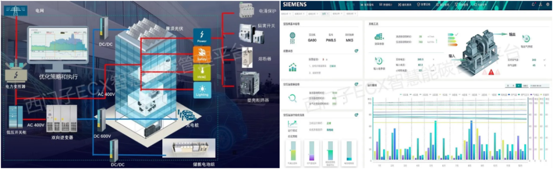 ECX光储直柔云平台提供光伏设备、电力变压器、储能装置(包括V2G)、微网负载管理、充电桩(站)管理一站式服务,基于负荷预测和光伏发电预测模型,结合西门子智能配电硬件产品打造全新的光伏软硬一体优化方案,实现安全高效存储和利用光伏能源。还可以借助综合利用模块利用电力市场峰谷价差,为企业创收的同时,还能降低足迹,实现“环保”和“经济”一举两得。