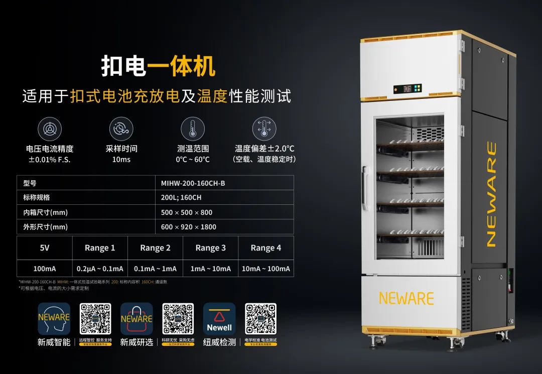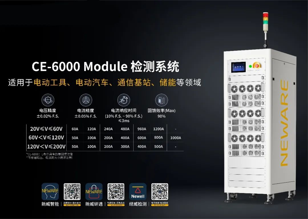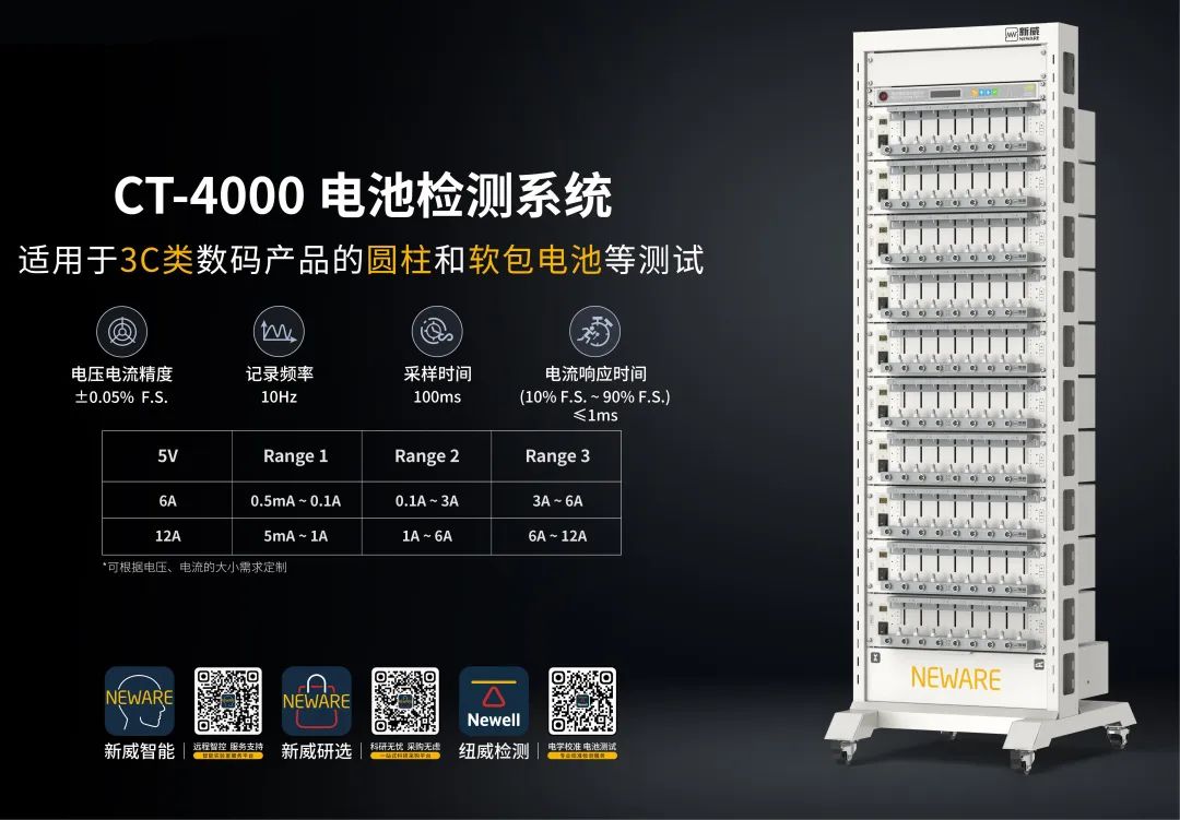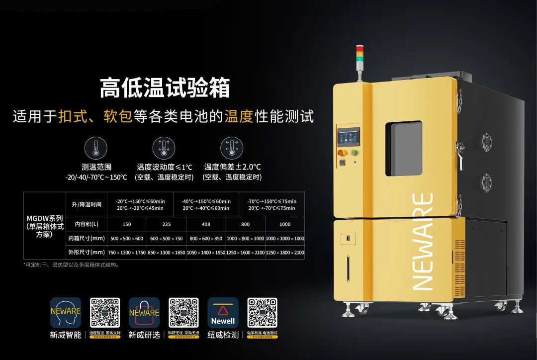 新威(NEWARE)始创于1998年,致力于为全球电池生产、新能源汽车生产、储能电池配套等企业、国家质检部门、院校及科研机构提供高性能电池检测系统、化成分容分选系统、环境试验箱、NEWARE AI、MES及自动化生产线项目等。现出货设备超327,000台,获得专利和软件著作权700+项,荣获国家高新技术企业等认证。