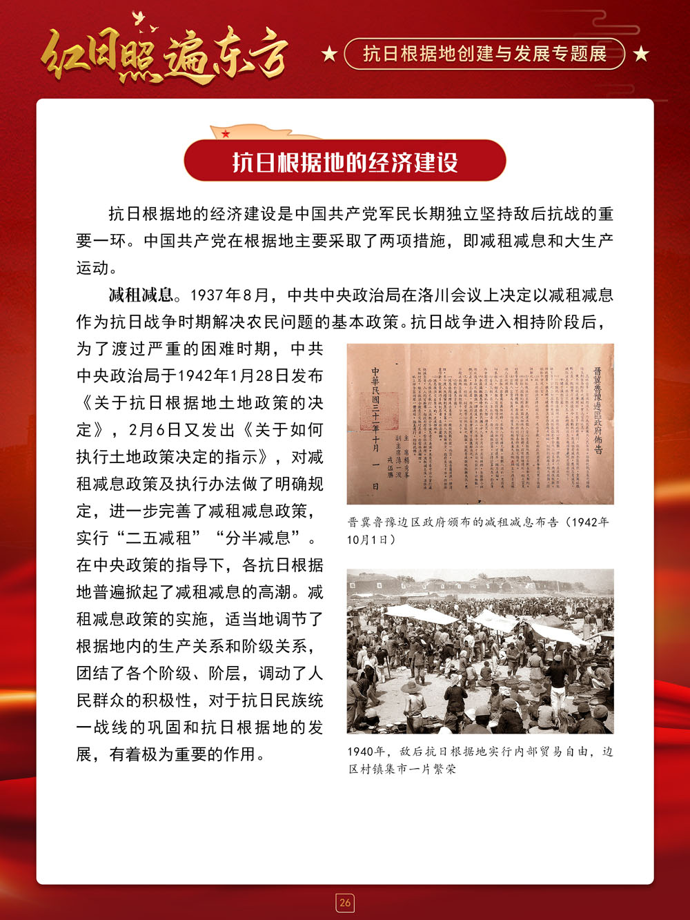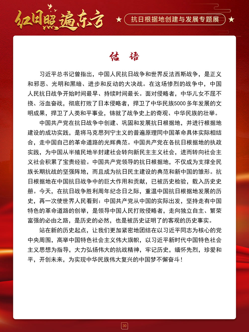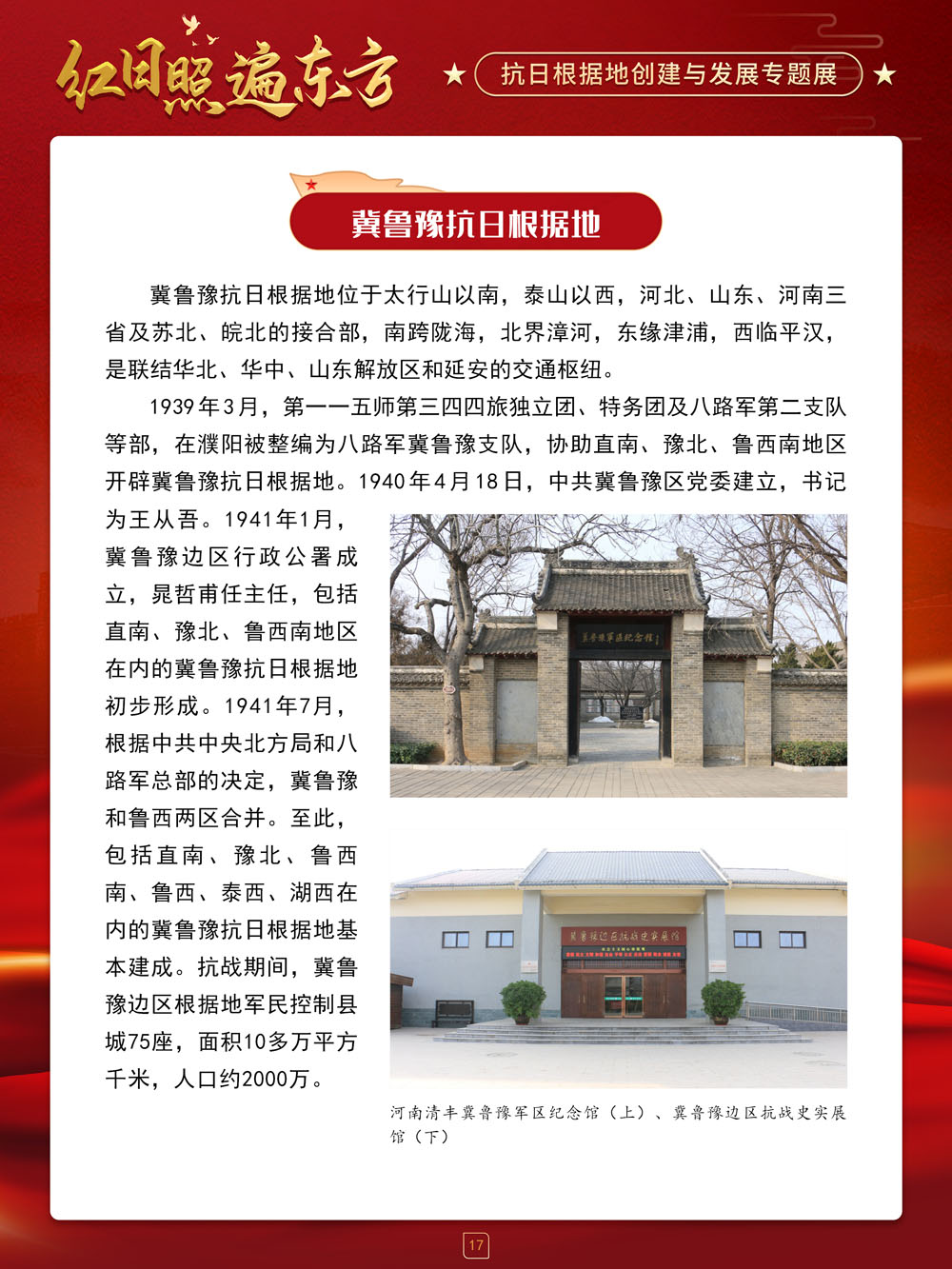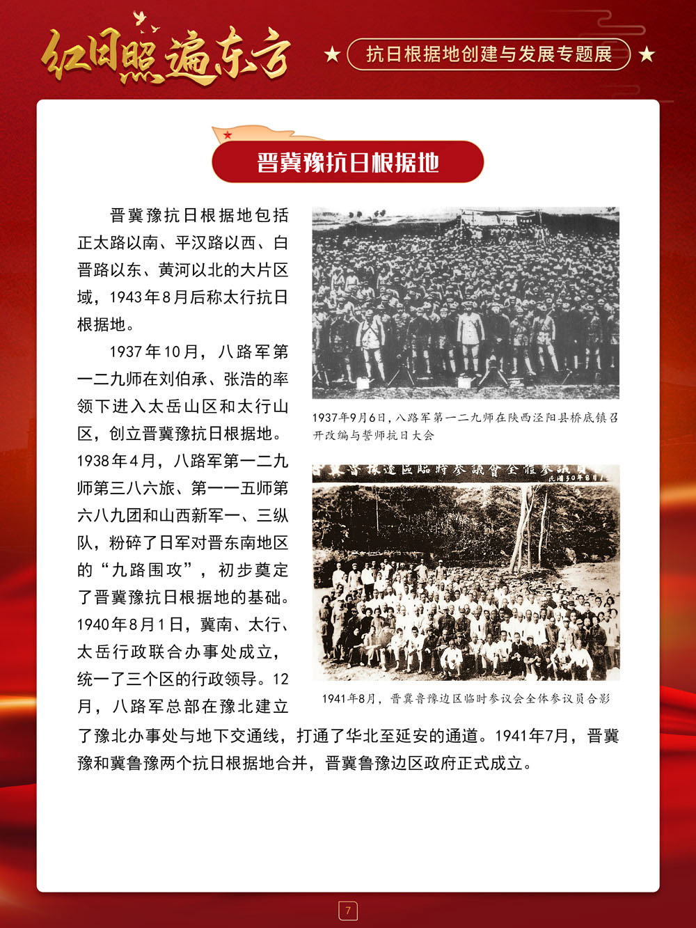 请跟随我们的展览一起回顾那血与火的风云岁月,盘点那些在艰苦卓绝的斗争中建立起来的抗日根据地及其政治、经济和文化建设,弘扬抗战精神,赓续红色血脉,在新时代,继续朝着中华民族伟大复兴的中国梦奋勇前进!