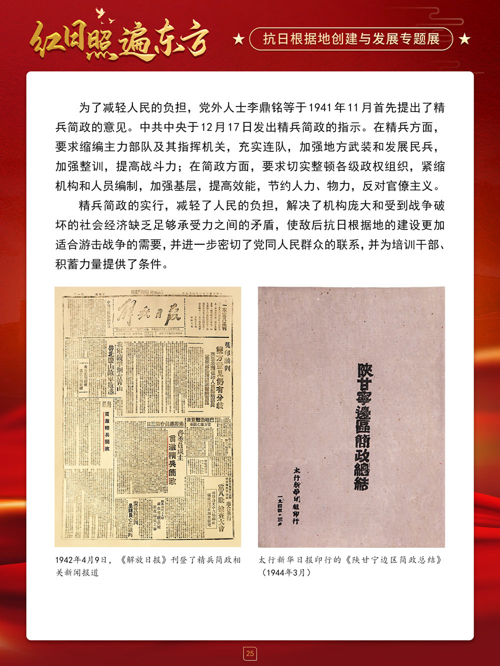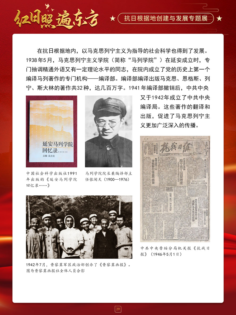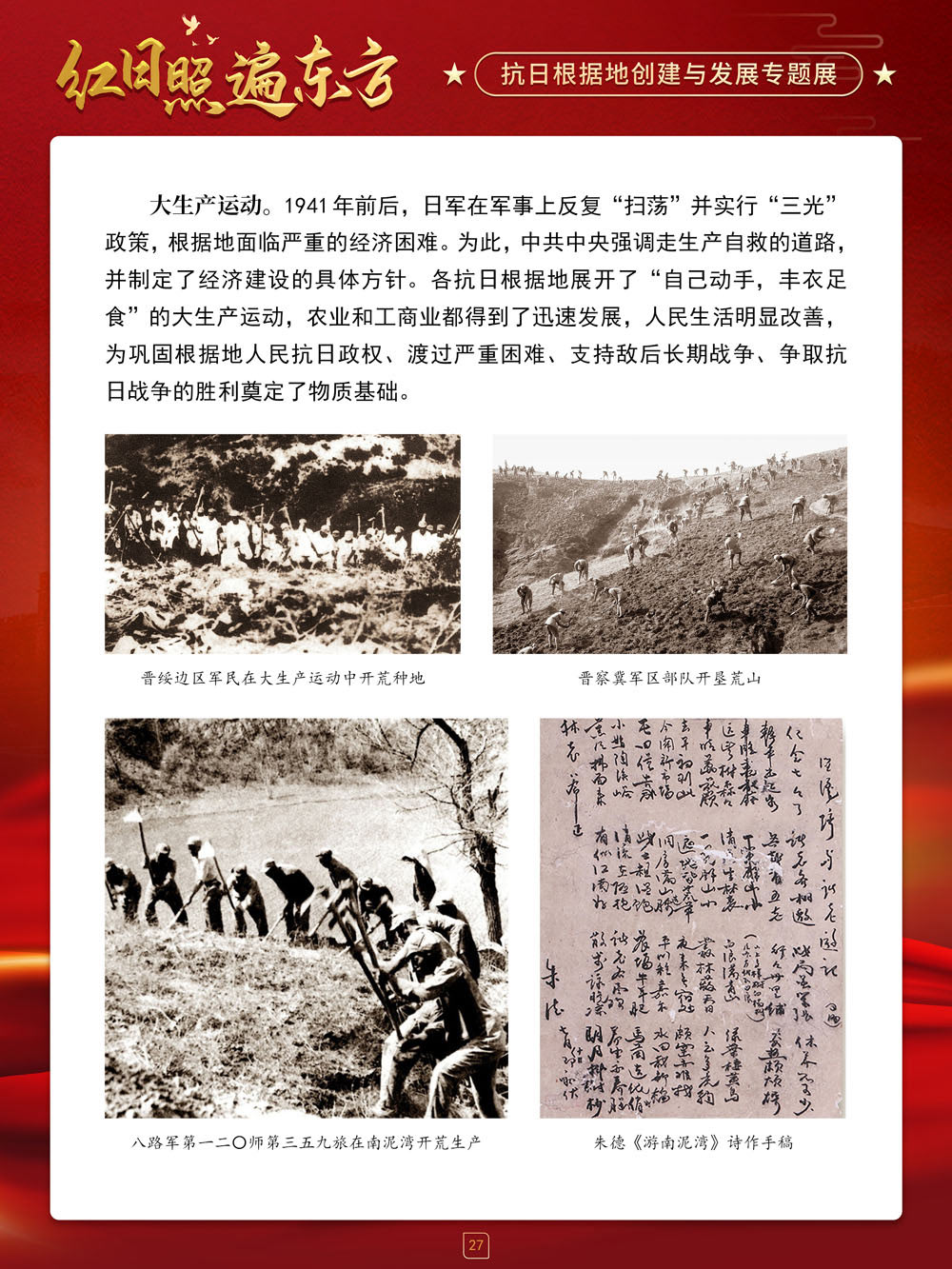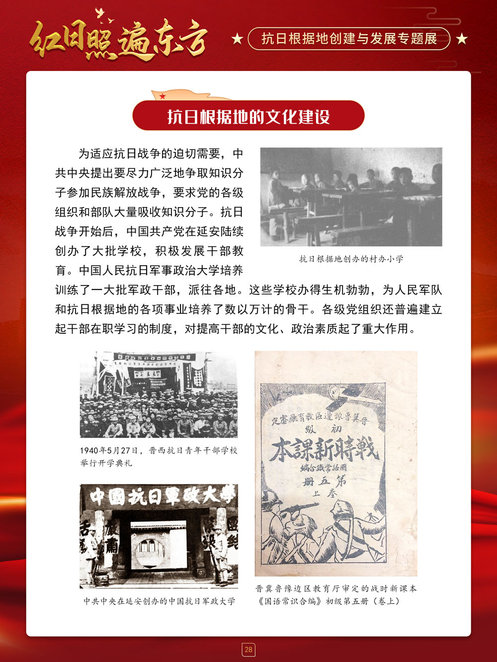 请跟随我们的展览一起回顾那血与火的风云岁月,盘点那些在艰苦卓绝的斗争中建立起来的抗日根据地及其政治、经济和文化建设,弘扬抗战精神,赓续红色血脉,在新时代,继续朝着中华民族伟大复兴的中国梦奋勇前进!