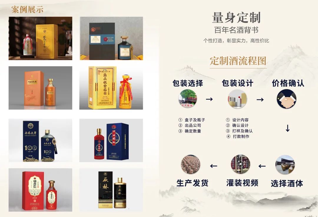 企业定制酒是按照企业自身文化和品牌诉求、需要,制造商对企业所需的白酒外包装的设计风格和白酒品质满足其独特要求的一款定制白酒。
