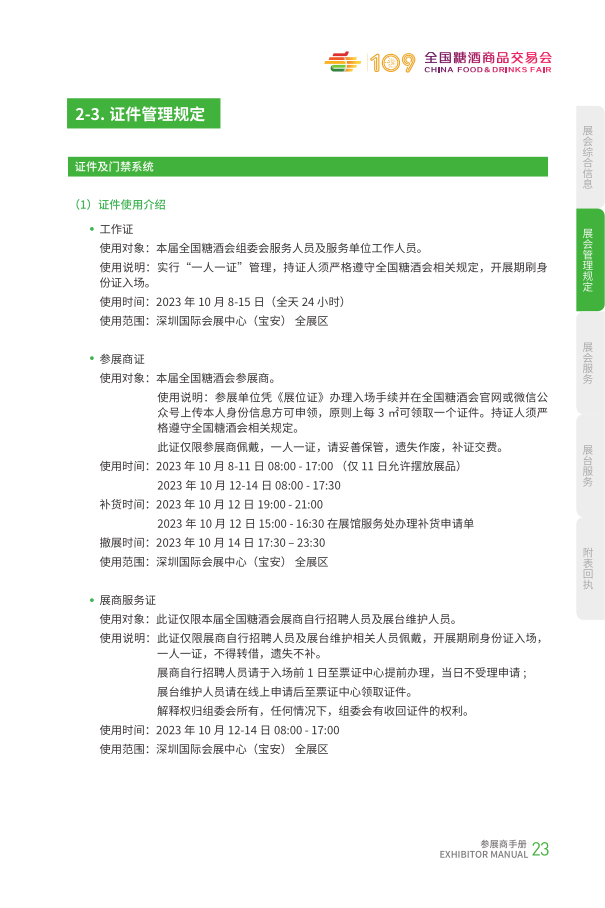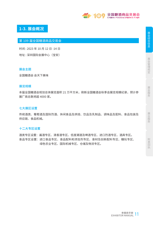 第 109 届全国糖酒商品交易会将于 2023 年 10 月 12 日 -14 日在深圳市举办。