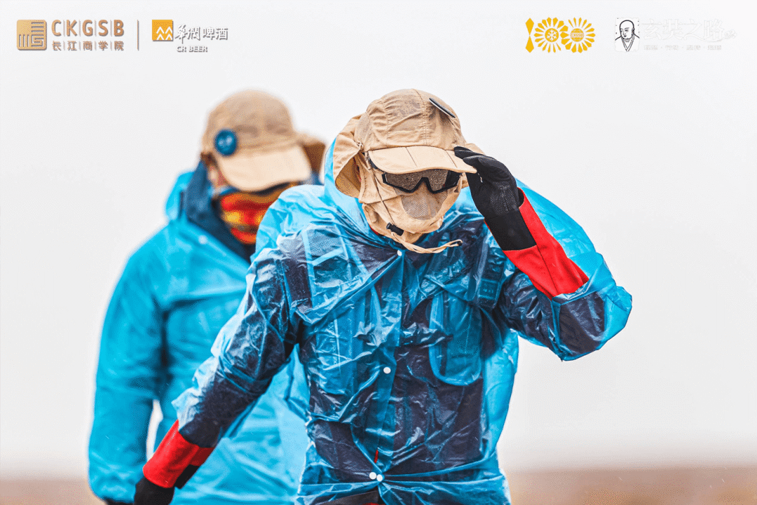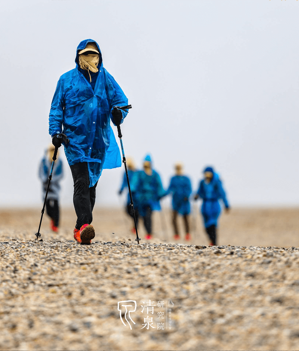 戈壁徒步第二天,队员们面临着一场荒漠罕见的大雨。从出发开始一直持续到下午两点,但是经过第一天的挑战,队员们展现出了惊人的行进速度。最快的队员在两点多就抵达了目的地,而最慢的队员也在五点多成功抵达。