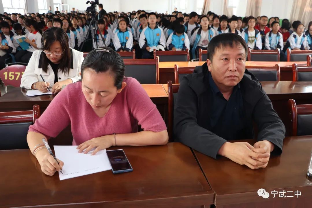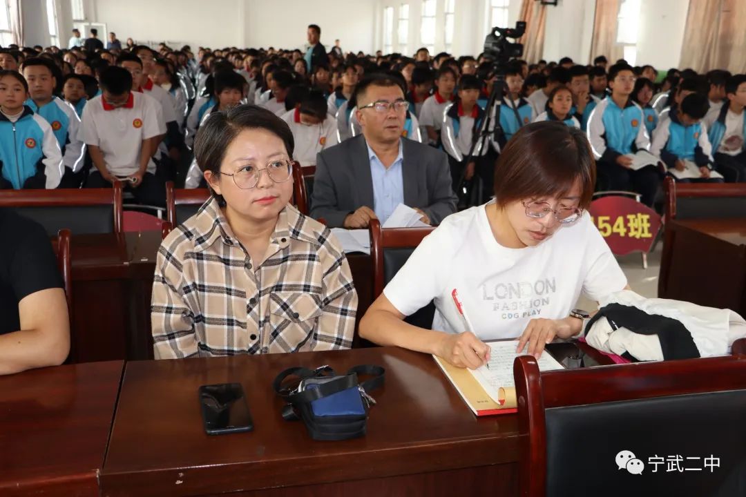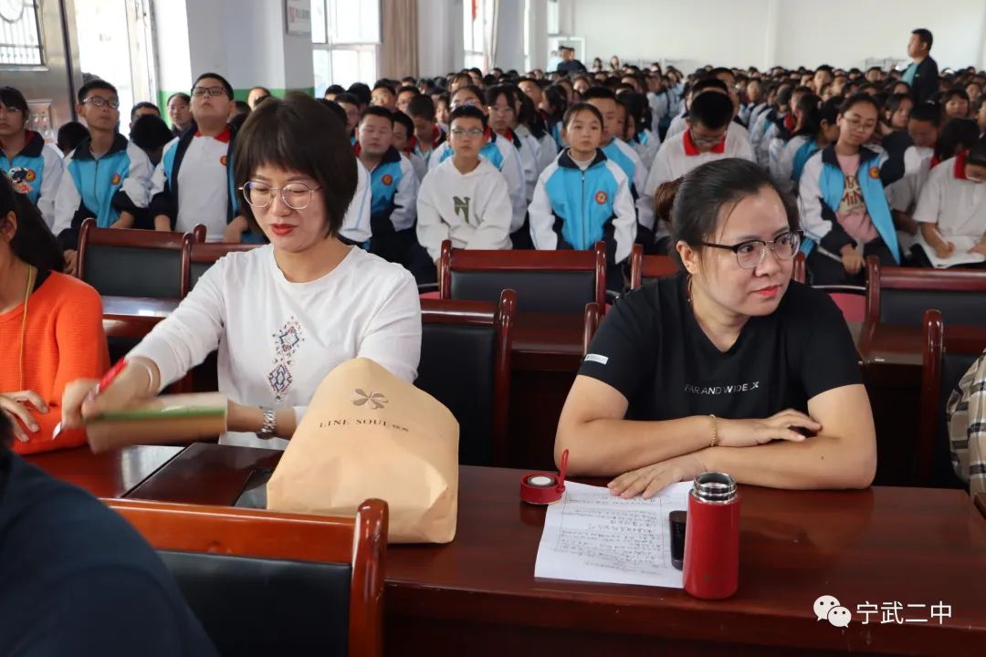 在讲到“志存高远、敢于追梦”这一条目时,李校长列举山西才俊、楚楚街创始人吕晋杰的创业故事和成功经历勉励学生仰望星空,脚踏实地;他还通过解读山西吕梁2023年理科高考状元王立烨、江西南昌市第二中学杨一鸣的逐梦之路以及他们的成功特点来点拔二中学生在平日学习中要注意书写规范、养成良好的学习习惯;在讲到“持续不懈地努力”这一条目时,李校长引用了荷花定律、竹子生长定律等鼓励学生不要放弃、奋力拼搏、超越自我;在给学生讲解人生方向时,李校长又在全国地图上展示了39所985大学的分布地图,激励学生刻苦努力,向名校看齐,谱写辉煌人生;李校长还通过展示二中校区考入忻一中的2020年毕业生白雪、2023年毕业生康欣宇两位优秀学生的书写卷面来激励学生从关注细节做起,每一天取得一点进步,坚持不懈努力,就能厚积薄发,直达成功的高处,登山望远,欣赏最壮丽的风景!最后,李校长又通过具体实例深情告诫同学们不要孤芳自赏、不要单打独斗,要团结同学,取长补短,优势互补,共同进步,在团队合作中汲取力量,投身到为祖国和人民的事业中创造奇迹,报效祖国,实现人生价值。