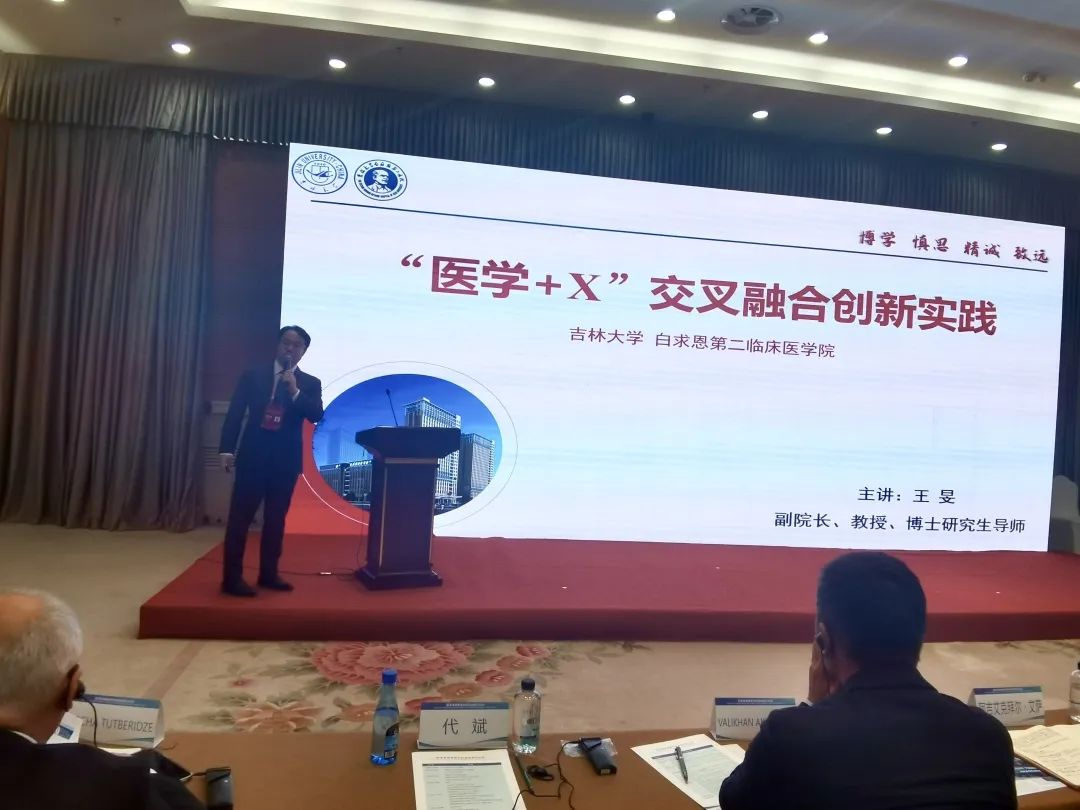交流中,王旻以多学科交叉下的“医疗大循环体”为切入点,阐述了吉大二院依托平台工程,推进“医学+X”的交叉创新融合理念。吉大二院以机制创新医学知识重构,以平台实践学科交叉融合,在新医科背景下,加速“多层化、立体化、网格化”白求恩式卓越医学人才培养,实现研究生教育重大教学改革突破,使得研究生能力显著提升。并在构建和实践“新医科” 医学教育体系下,推动科研创新和成果转化。王旻通过“医学+理工”“医学+通讯”“医学+考古”“医学+哲社”“医学+汽车”“医学+仿生”等经典案例,为各高校在新医科建设、研究生培养、科研能力创新、教学体系改革等方面表达了智慧之声、分享了精彩观点,获得现场专家一致赞誉。