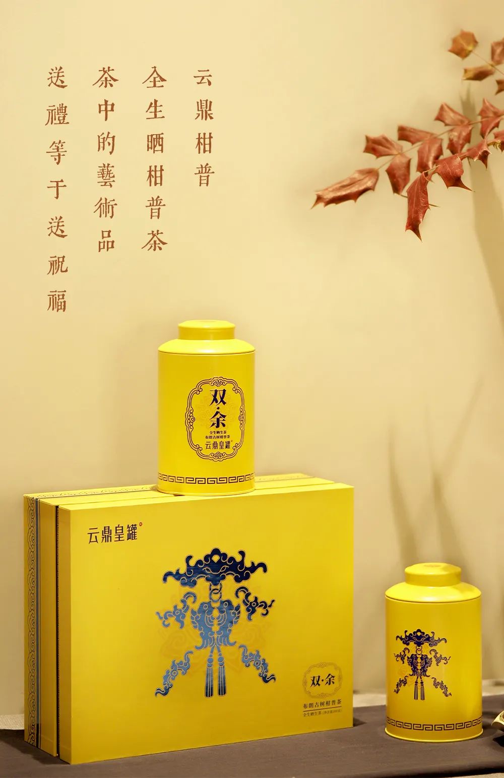 云鼎柑普采用由中国古代皇家黄色结合阳光生晒、柑果成熟丰收以及柑普生熟茶不同的颜色,演变成具有云鼎特色的生茶色和熟茶色——云鼎黄,象征阳光、资源、欢乐、财富和尊贵。