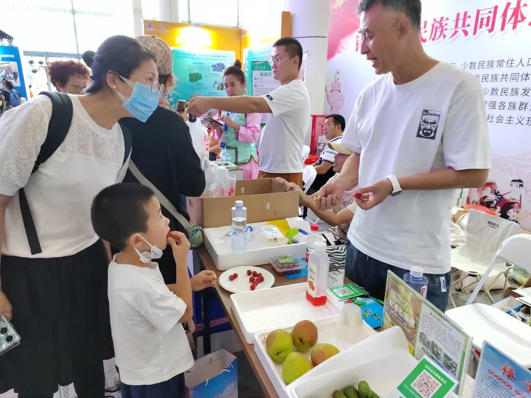此次活动日主题为“提升全民科学素质,助力科技自立自强”。首次参展,民族乡(镇)展位多角度展现科普融入民族乡村现代化建设的生动实践。不仅展出科技加持下的“谷山”地瓜、银杏叶茶、黑玉米酒、树莓汁,且销售颇具地域特色的蜂蜜、软枣、大榛子、老月饼等30余种满乡物产,对11个民族乡(镇)、5个少数民族特色村寨的自然风光、特色民宿、产业发展、生态景区进行了有温度的宣传,使人们不由憧憬纷繁城市外温暖的世外桃源,民族特色乡村游展架前人们热情交流。