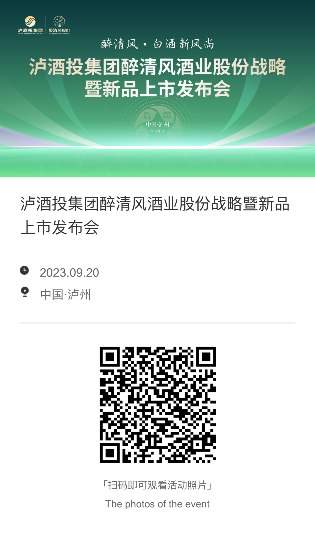 敬请期待┃泸州白酒投集团醉清风战略暨新品上市发布会明日举行
