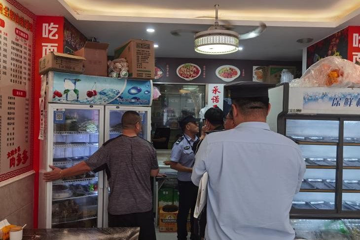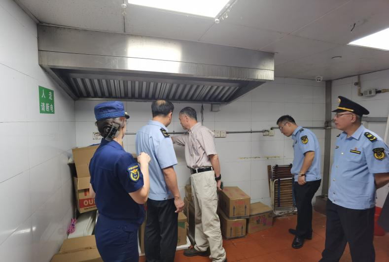 近日,大宁路街道党工委副书记蒋晓军带队对米特云厨及其周边餐饮商铺开展联合安全执法检查。静安区消防救援支队、大宁路派出所、大宁路市场监管所、街道城管执法中队和社区平安办共同参与本次检查。