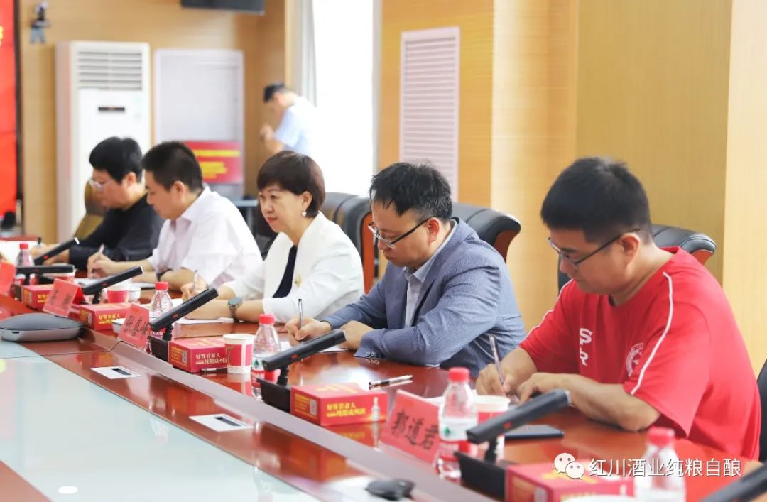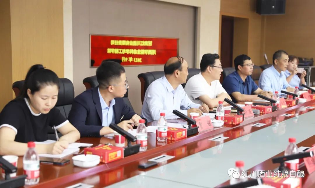 考察组一行先后到公司白酒生产车间、原粮库、曲库、制曲车间、年产1.2万吨纯粮原浆白酒建设项目现场、包装车间进行了实地考察,深入了解了红川酒的发展历程、酿造工艺、生产规模、核心产品及未来发展规划等情况。座谈会上,双方就校企合作、产教融合、人才培养以及服务社会等方面进行了深入交流。