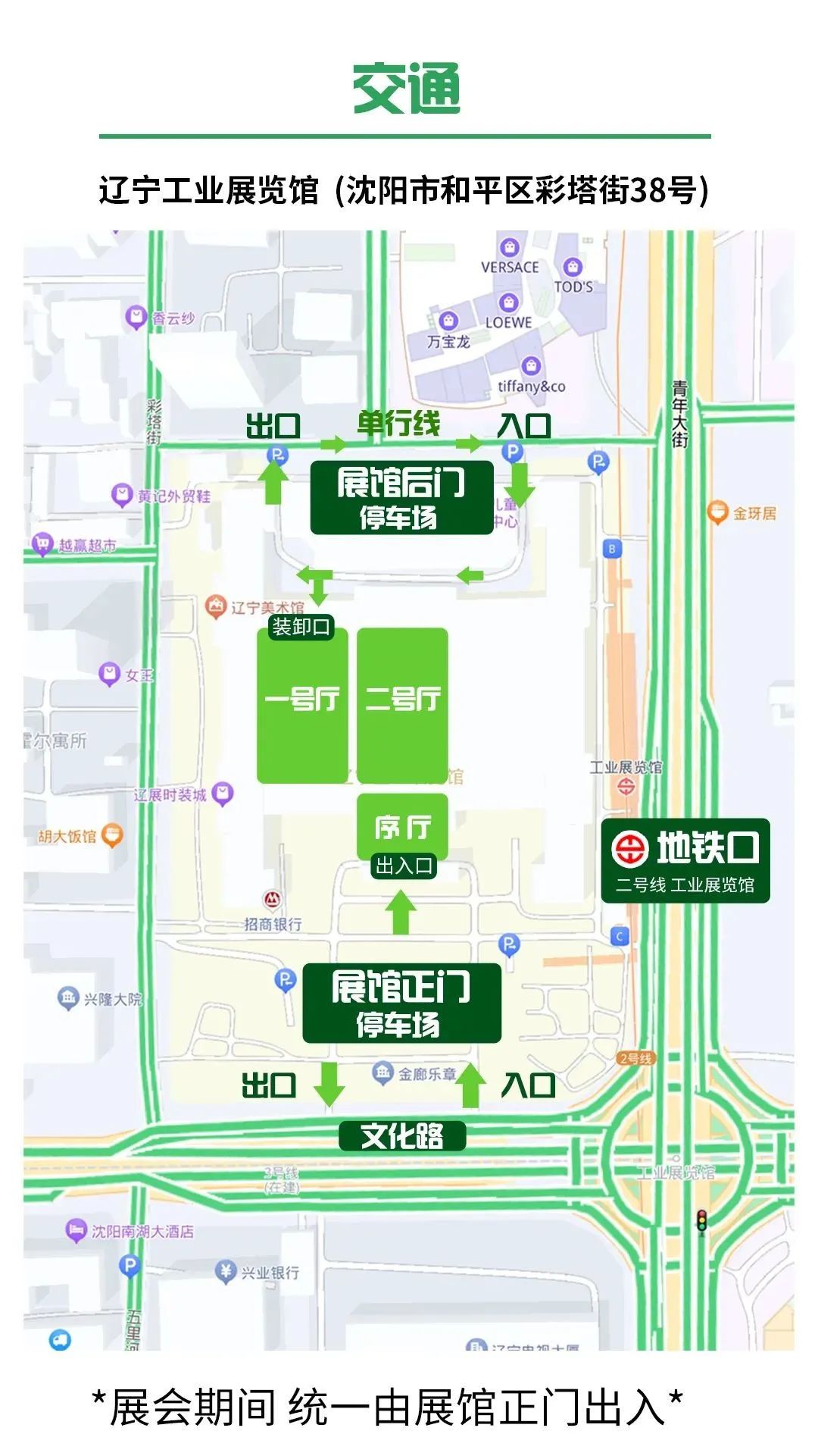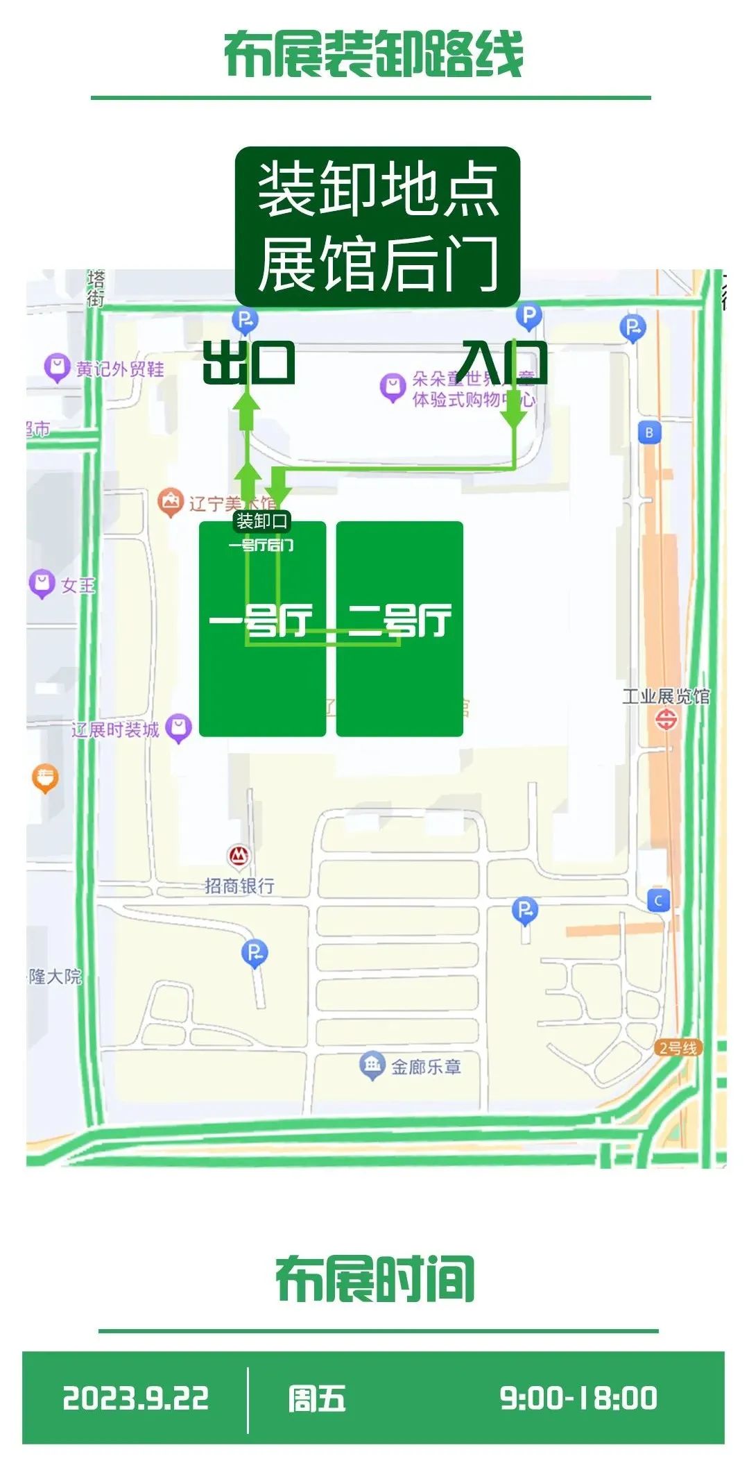 ○ 布展车辆可由展馆北门停车场驶入展厅后面,可从一号厅后门进入,直接在相应展位进行装卸。