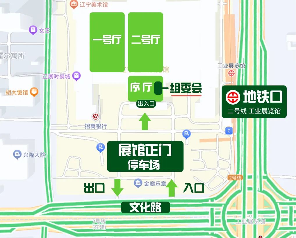 ■ 地铁2号线工业展览馆站出C口直达