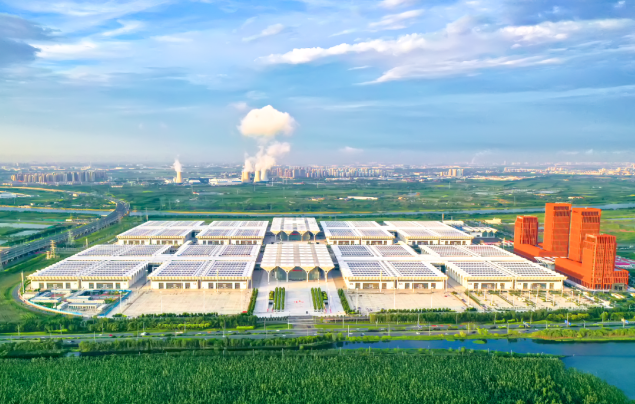 国家会展中心(天津)坐落于天津市736平方公里生态屏障之中,周边森林覆盖,绿树成荫。项目突出绿色、智慧、创新的特点,整体100%采用装配式钢结构,运用了太阳能光伏发电板、地源热泵等百余项低碳、节能、环保技术,整体能耗较传统会展项目减少8%,整体碳排放总量比其他建筑减少25%以上。