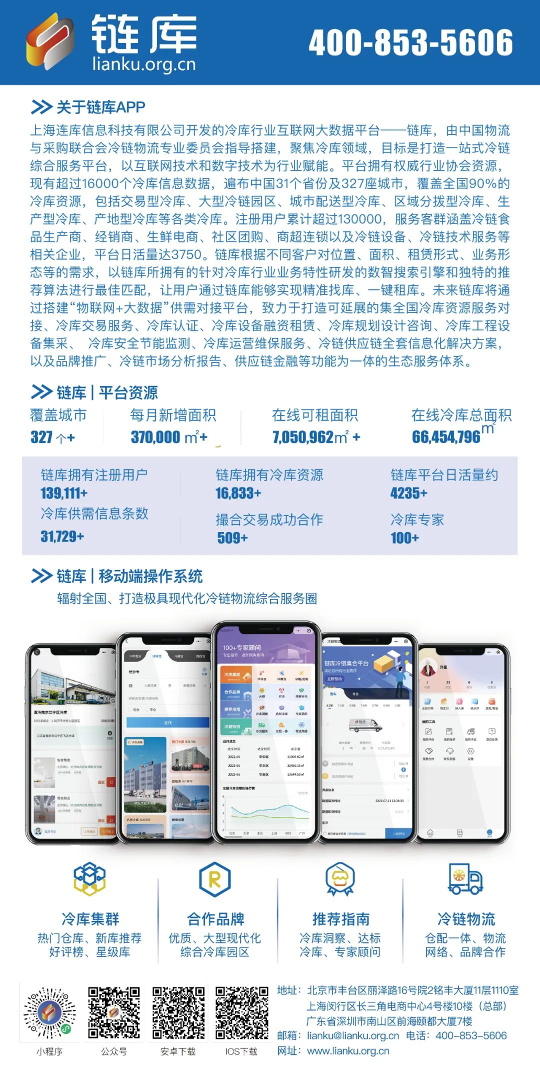 同时,链库平台背靠中物联冷链委及最顶级的冷链专家团队,可以为行业提供最专业最先进的包括冷库设计建造、冷链园区规划、冷链供应链全套信息化解决方案,以及供应链金融、资产评估及交易等延伸服务。
