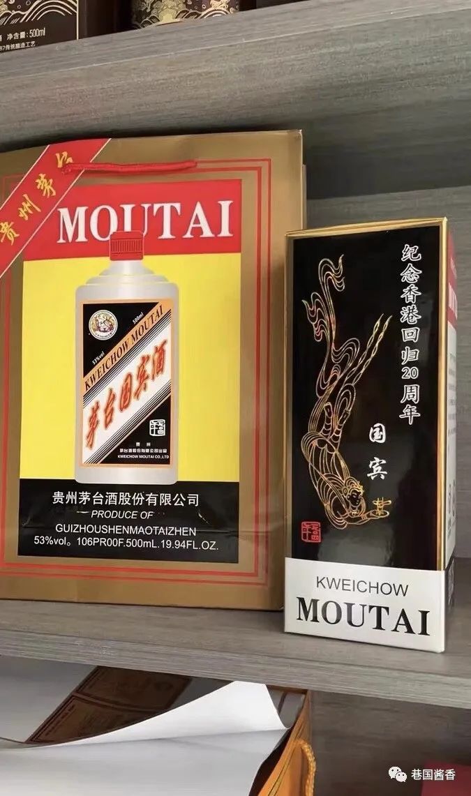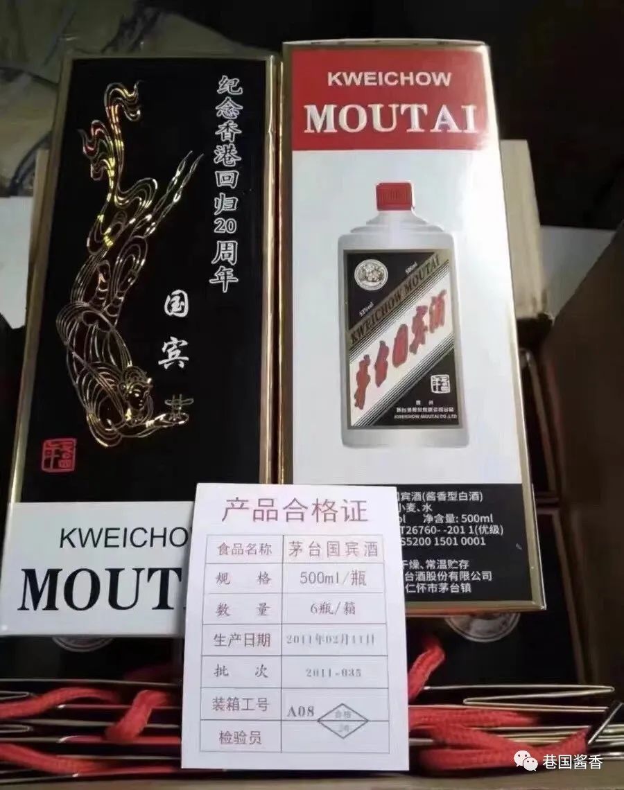 茅台国宾纪念香港回归20周年 : 的生产工艺古老而独特,是当地历代酒师在长期的生产实践中,顺应大自然的变化而创造和积累起来的,整个酿制的过程顺应春夏秋冬的自然交替节律,是人类成功利用微生物的典范。
