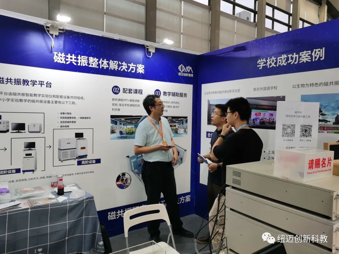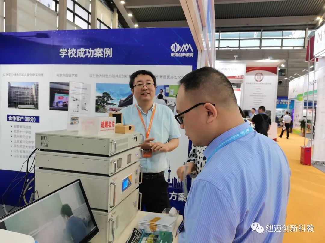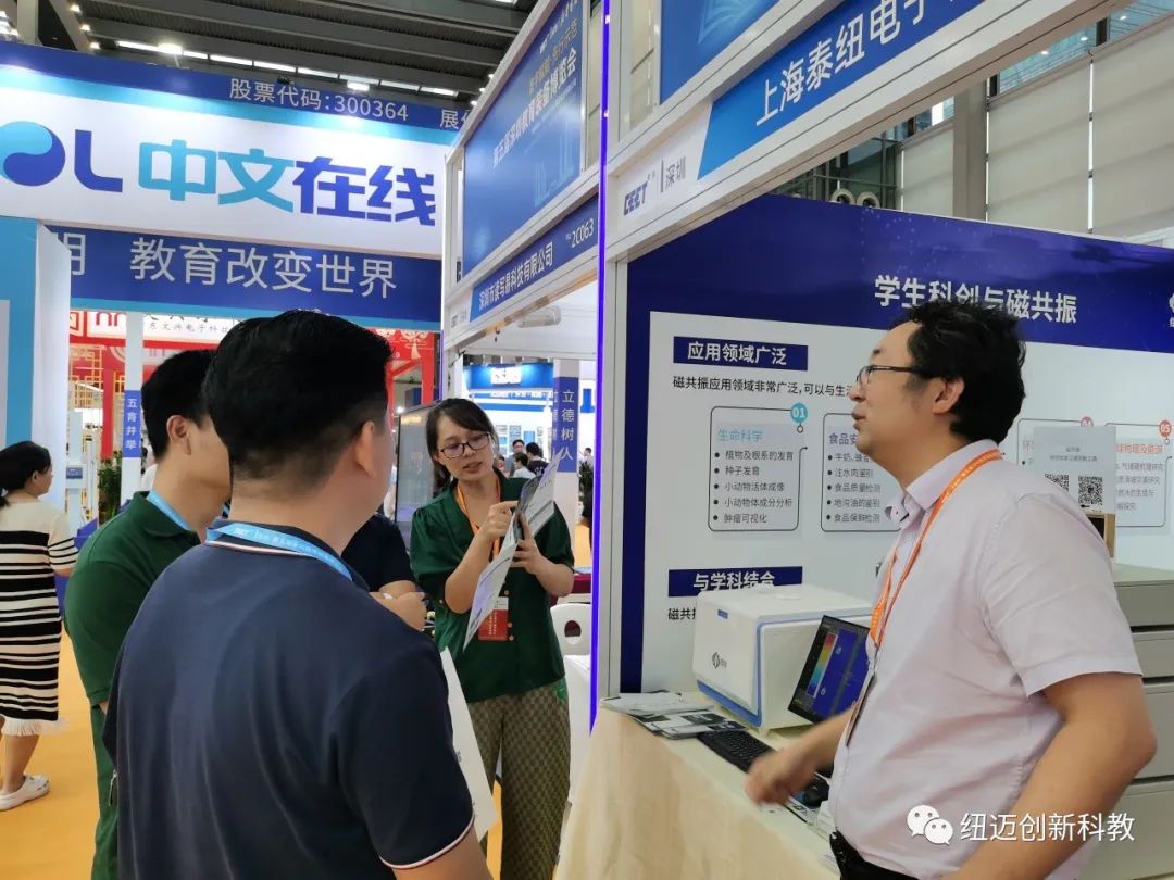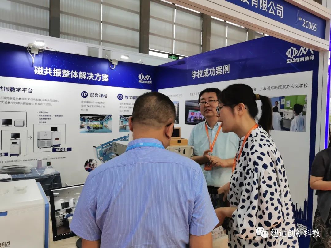 纽迈创新教育第一次参加深圳教育装备博览会,很多老师也对我们磁共振整体解决方案感兴趣,主动了解我们的设备是什么,如何应用于中小学的教育教学中,并对我们完整且详细的课程体系和教师培训体系称赞连连。