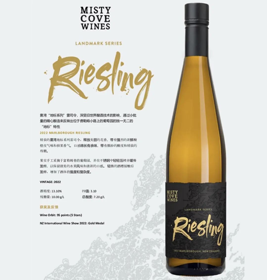 【2瓶装】2022新西兰Misty Cove雾湾马尔堡产区地标雷司令白葡萄酒
