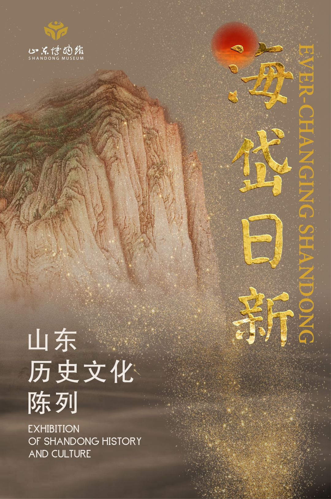 “海岱”虽起源于地理概念,但更多体现的是文化圈层的概念,山东的文化不仅影响本地,同时也辐射影响周边地区。“日新”主要是体现此次展览展现的在不同历史时期山东领先于全国,领先于世界的故事。该展览按照“中国特色、世界一流”的定位,确立了“彰显齐鲁文化魅力、展示山东文明发展历程、突出馆藏文物特点、体现最新学术研究成果”的展览理念。展览面积5000平方米,展出文物2000余件,分为“史前时期”“商周时期”“秦汉隋唐”“宋元明清”“近现代”5个部分,全面立体展示山东六十多万年人类史、一万年文化史、五千年文明史、三千年齐鲁文化史、一百年奋斗史。
