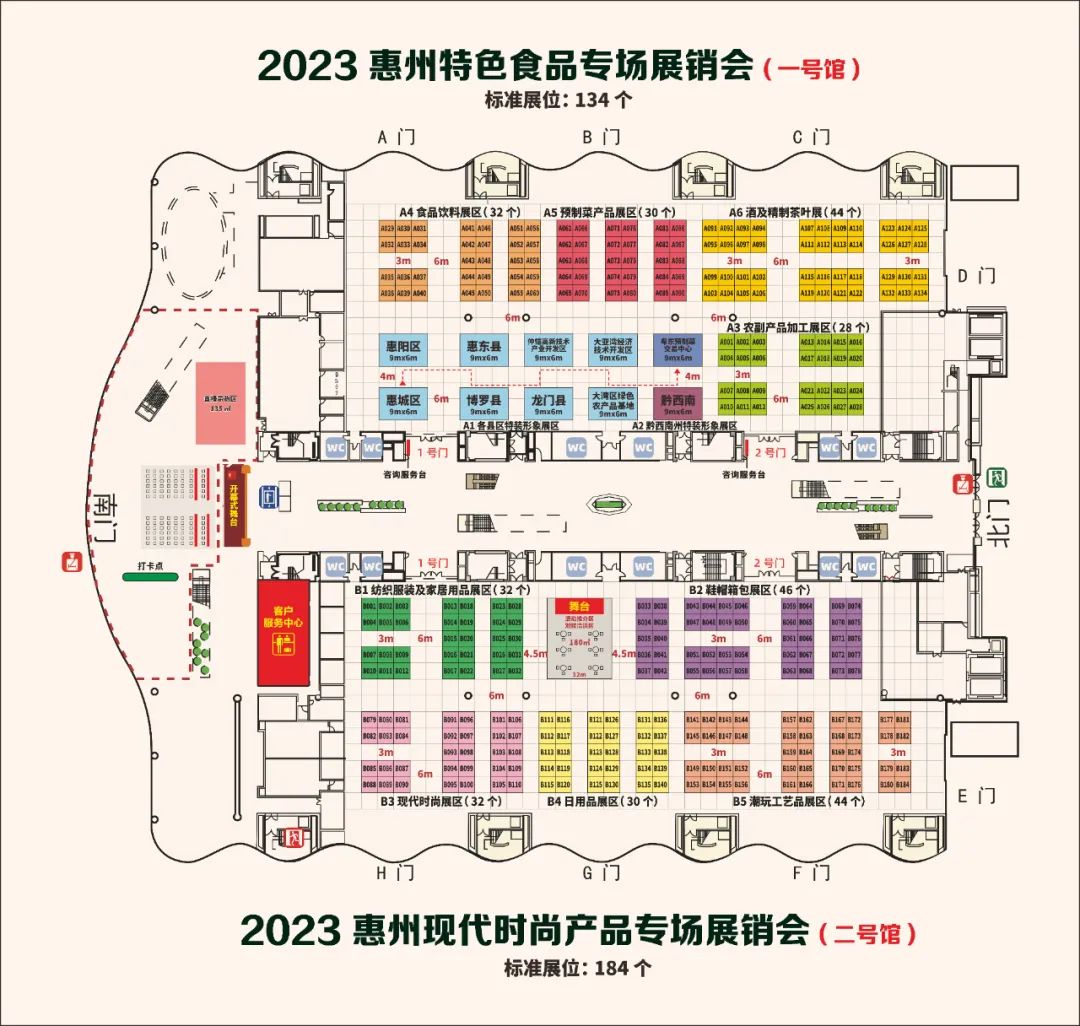 展会总面积约12000平方米,下设两个专场:惠州特色食品专场及惠州现代时尚产品专场,预计将有近300家行业百强、名优企业,携带3000余种惠州优质特色食品和现代时尚产品亮相展销会,展会口碑有保障。