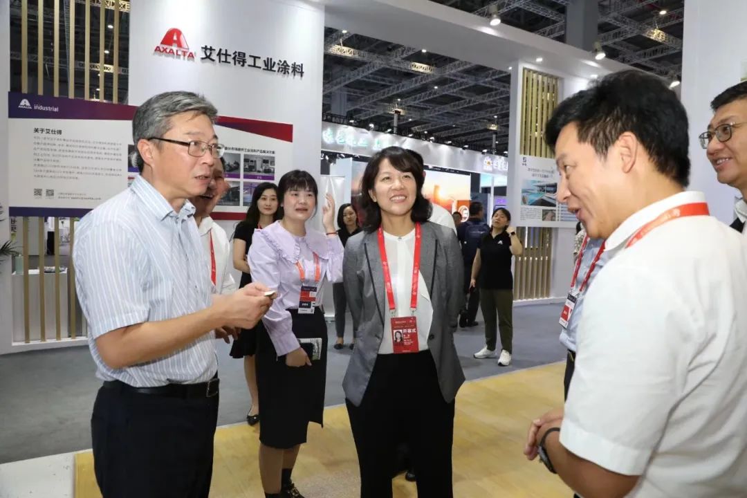 开幕式后,上海市青浦区委副书记、区人民政府区长杨小菁,上海市青浦区委常委、副区长金俊峰参观了青浦区新材料展台。