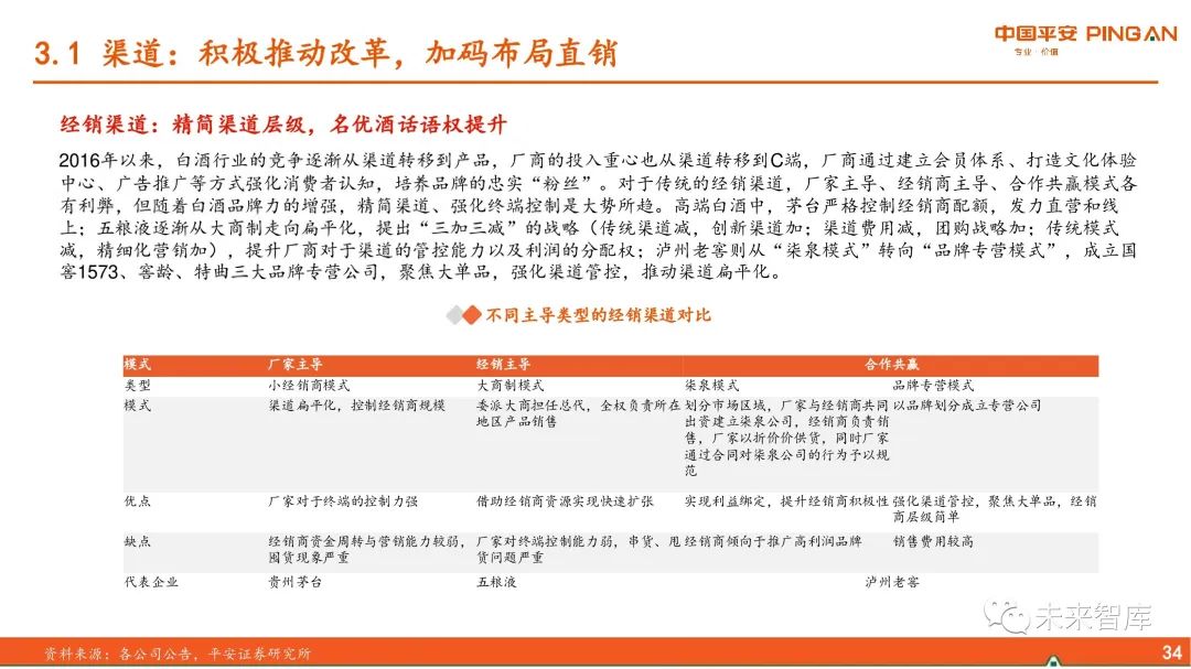 渠道复盘:主导权几经更迭,多渠道复合发展。1978年以来,伴随经济体制、市场成熟度、行业格局更迭变化,白酒的渠道改革亦持续推进。改革开放初期,计划经济主导白酒市场,国营的糖 酒公司掌控渠道。1988年价格管制开放后白酒进入大流通时代,个体户、流通商成为白酒销售的新渠道。亚洲金融危机后,白酒逐渐过渡到买方 市场,经销商逐渐掌权。而在白酒的黄金十年,多渠道运营难度加大,厂商通过前置性的资源投入加大对于渠道的控制能力,渠道由厂商与经销商 共同主导。2013年以来,白酒渠道进入复合竞争阶段,品牌体验店/专卖店、网购、公关团购(社群/圈层)等新渠道快速发展,各大酒企加大C端 资源投入加强消费者对品牌的认知,厂家对于终端的控制能力进一步提升。
