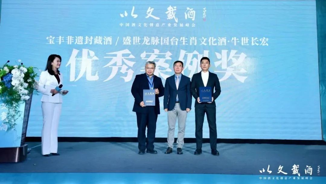 本届峰会展示的宝丰非遗封藏酒,采用非遗宝丰六艺酿造,非遗古篓酒海储陈,又以非遗汝瓷为器,是由两大国家非遗文化IP联名打造而成,具有双重文化属性的美酒,吸引了现场众多嘉宾的关注与肯定。峰会上,宝丰非遗封藏酒凭借极高的文化属性和收藏价值荣获了“优秀案例奖”称号,宝丰酒业有限公司董事长王若飞代表企业上台领奖。