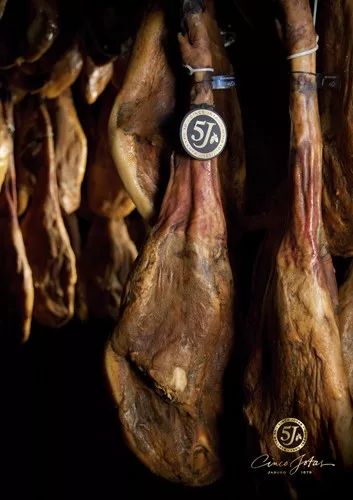 而剩余的10%才是我们今天要说到的——伊比利亚火腿Jamón Ibérico。它是欧陆传奇食材之一,与松露、鱼籽酱、鹅肝并称为美食世界的四大奇葩。只有血统纯度在75%以上的伊比利亚黑猪加上至少365天的长且精细的加工才能成就这一极致的美味。