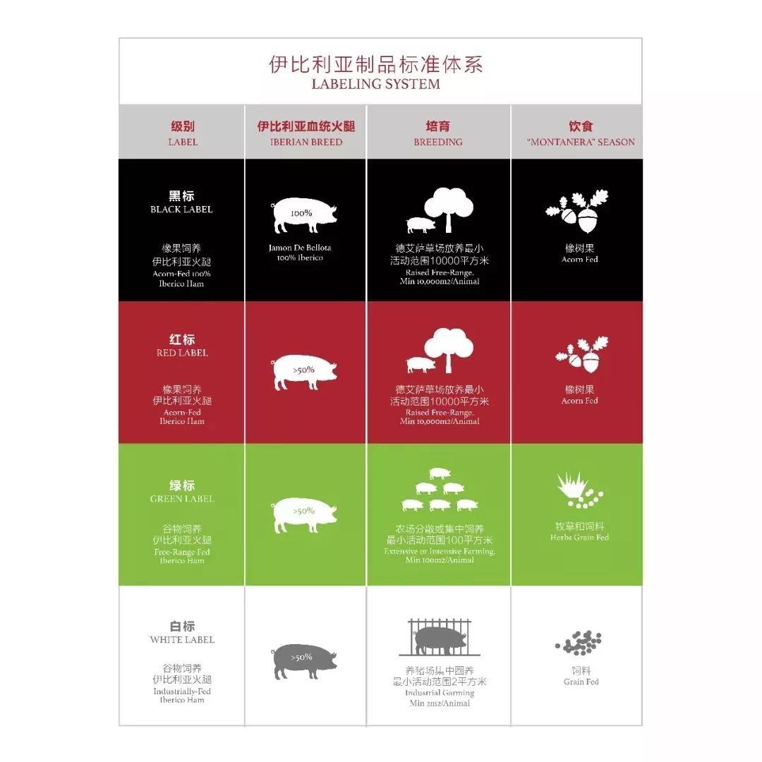 影响伊比利亚火腿品质的要素有四个:血统,伙食,运动指数和盐津固化及风干流程。