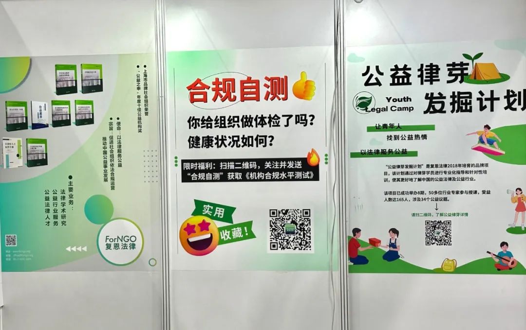 在近日于深圳举办的慈展会上,复恩作为参展单位,展示了其在公益领域的独特视角与贡献。许多参观者对复恩所展示的益两Yilight(公益百科)、合规自测、公益律芽发掘计划等表达了浓厚的兴趣,纷纷向工作人员询问并详细了解这些项目的具体情况。