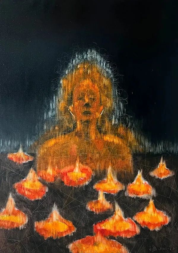 他们之中有职业艺术家、有高校教师、有跨行业的创作者,年龄覆盖五零后、六零后、七零后、八零后四个年龄段的成熟艺术家群体。所使用绘画媒材主要有油画、纸本绘画、数字绘画三种类型,虽同为绘画作品但在以上不同背景因素的交错中《十人作品邀请展》以“共时性”的方式为陕西当代绘画提供了一个丰富的结构性剖面。