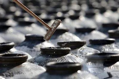 在我国酿酒的过程中,当白酒在蒸馏过程中流入锡壶时,由于表面张力的作用,蒸馏液中的水和酒会产生气泡,被称为“酒花”
