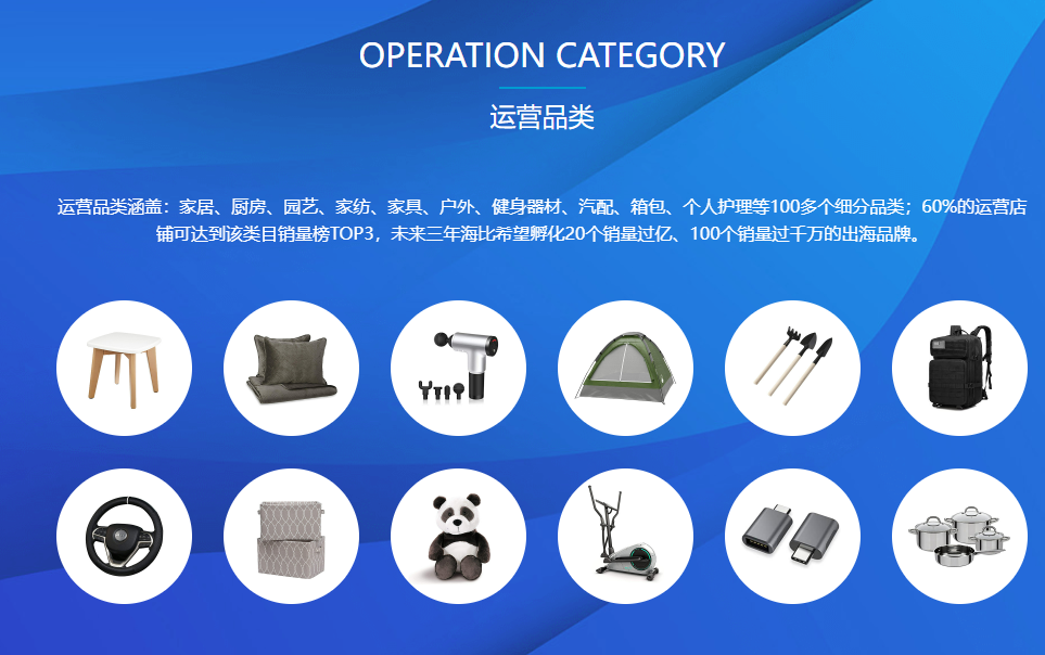 我们设立独立事业部,为工厂从选品到运营提供一站式全托服务,助力中国品牌成功出海。