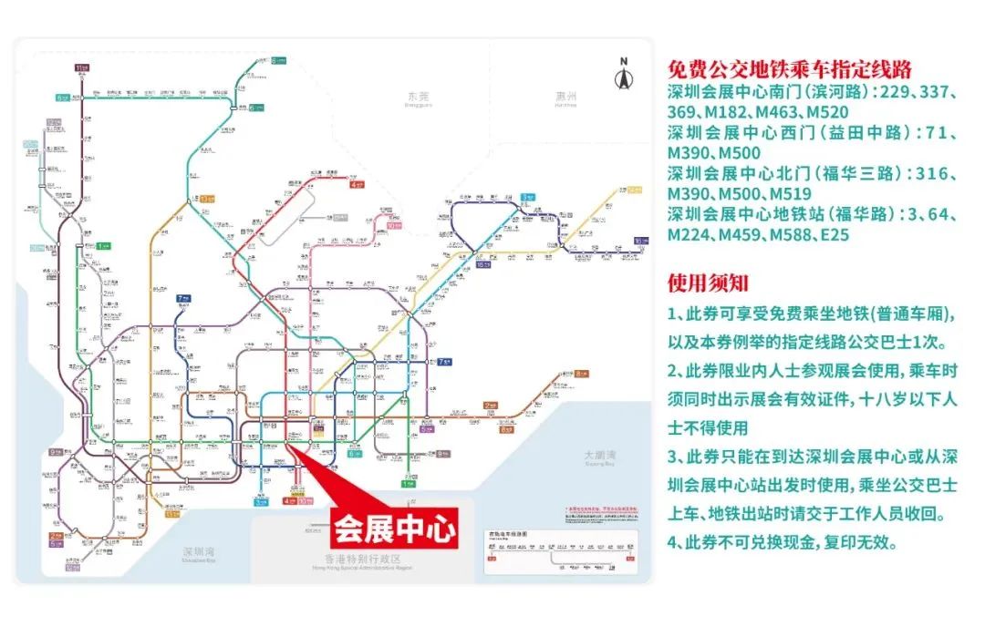 9月21日-23日期间,凡持中国物博会有效证件及公交地铁乘车券的乘客,可免费乘坐途经会展中心及周边公交站的21条公交线路抵离会展中心,或可免费乘坐地铁1、2、3、4、5、6、7、9、10及11号线(不含商务车厢)抵离会展中心,从车站专用通道进出。