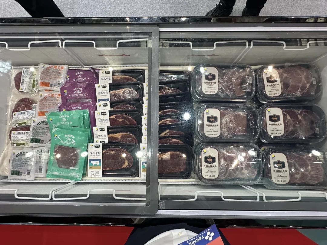 皓月集团展位位于展览馆主展区,良好的位置吸引了众多消费者的目光。灯光萦绕的展位陈列着各种类肉类制品,包括部位肉、牛排、火锅、烧烤、菜肴、预制菜、休闲零食、健康食品等。这些产品均采用了先进的工艺和技术,确保品质和安全。现场的工作人员热情接待每一位来访者,详细介绍皓月的发展历程、先进的屠宰、分割、包装等生产工艺流程,以及严格的食品安全管理体系。