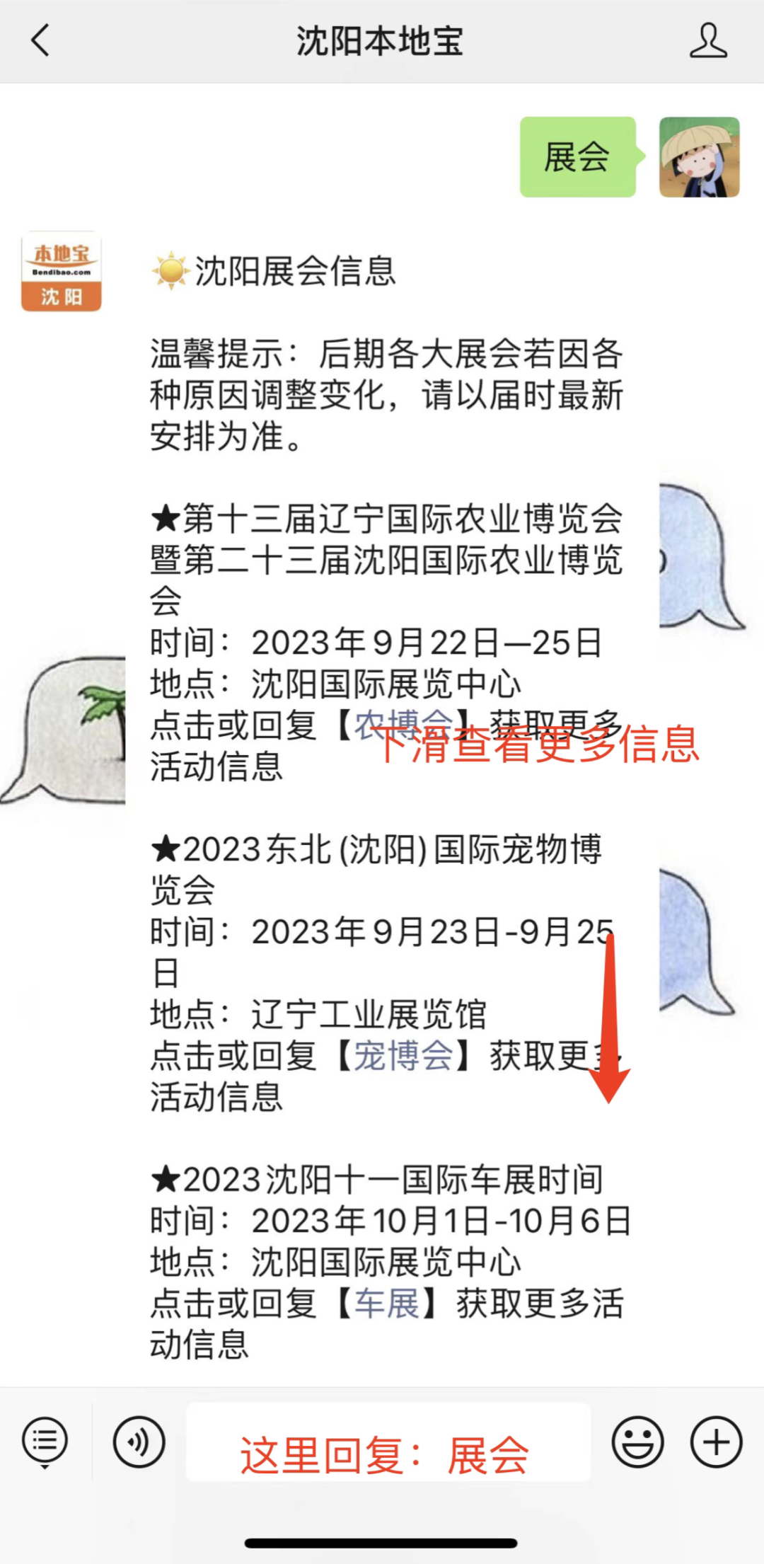 ?小编提醒:打开【沈阳本地宝】,在聊天对话框回复车展,即可查看相关最新消息。