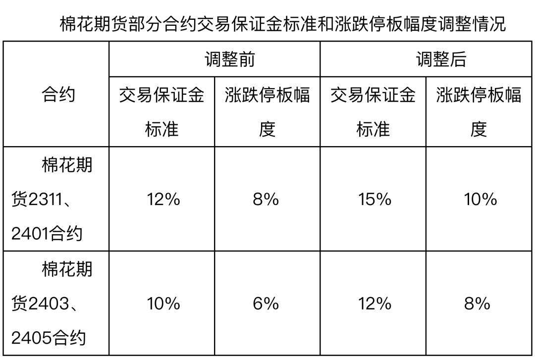 公司公告|关于调整棉花期货部分合约交易保证金标准和涨跌停板幅度的通知