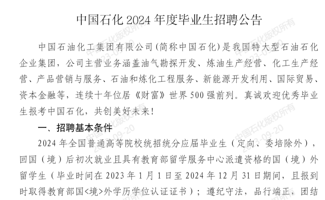 http://job.sinopec.com/#/school/groupNoticeDetail?id=c25215b19b2a20607f86938af57ce474&title=%25E4%25B8%25AD%25E5%259B%25BD%25E7%259F%25B3%25E5%258C%25962024%25E5%25B9%25B4%25E5%25BA%25A6%25E6%25AF%2595%25E4%25B8%259A%25E7%2594%259F%25E6%258B%259B%25E8%2581%2598%25E5%2585%25AC%25E5%2591%258A