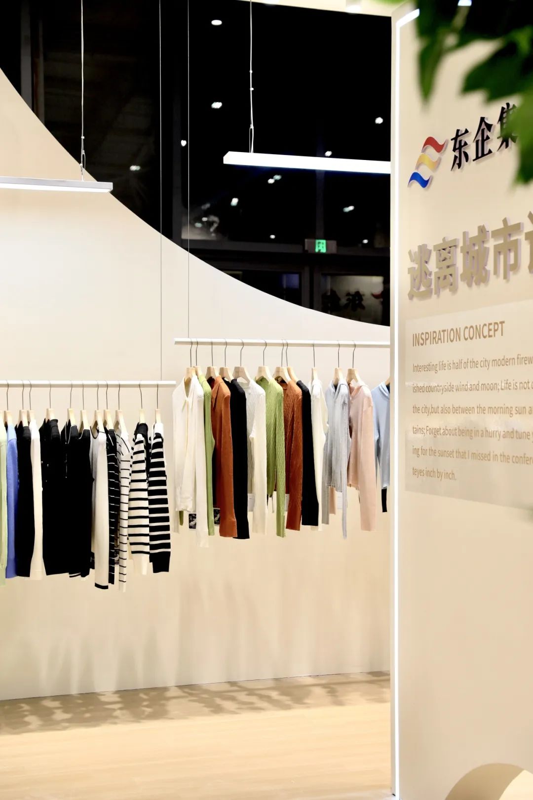 因此本次展位上我们展示的男女针织衫系列就是让人心驰神往的存在。男款针织衫继续保持了简约时尚的风格,采用高质量的面料,注重细节的设计,带给人们舒适的穿着感受。款式上也展现出更多的个性选择。女款针织衫则更加注重时尚和多样性。设计师们巧妙运用各种面料,打造出针织衫的不同质感和效果。在注重舒适感的同时还加入了流行的设计元素,使针织衫更加时尚和有趣。也因此东企集团的男女针织衫系列在展会上受到了很大的关注和好评,让毛衫在人们的眼中一改“因循守旧”的刻板形象。
