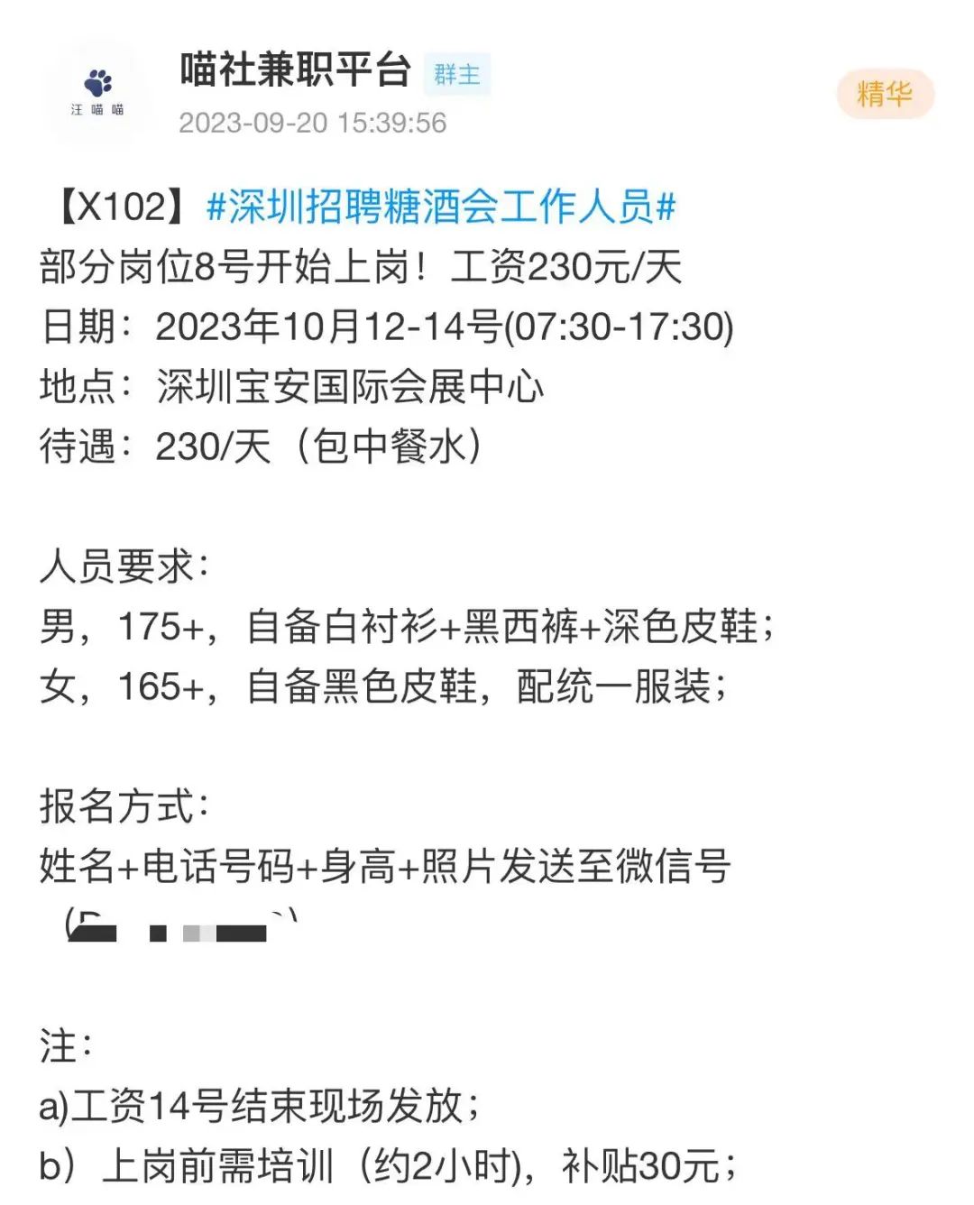 另:若在兼职活动合作的过程中,遇到任何押金索取/服装费用/恶意克扣工资/恶意拖欠工资等任何活动方违规行为,均可在深圳喵社-曝光举报栏发布处理(不可涉及个人隐私)