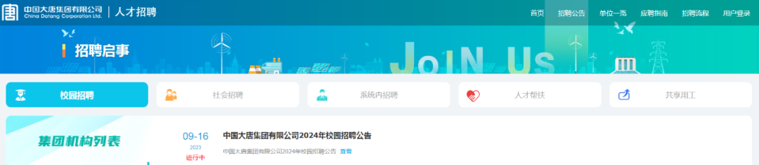 重点为中国大唐所属企业培养和储备人才资源,招聘岗位为基层企业生产、技术、管理等岗位,招聘对象以本科及以上学历应届毕业生为主。