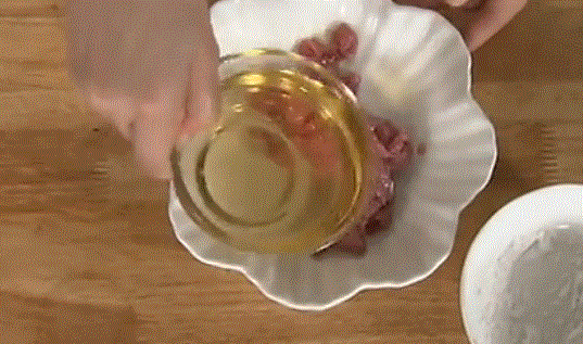 只需要在腌制肉片的时候,加入淀粉和啤酒,用手抓匀。