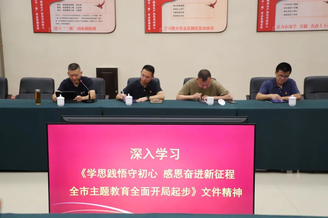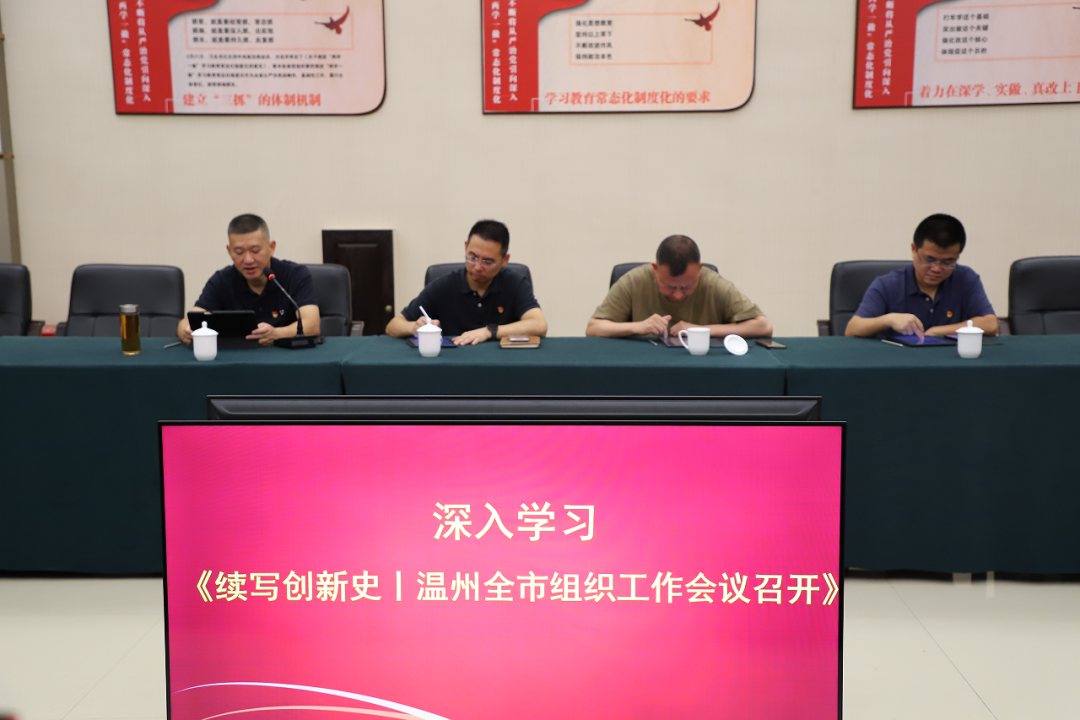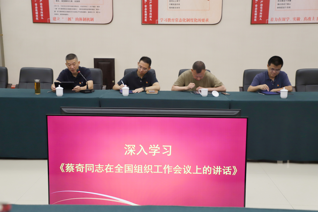 在公司党支部委员、副总经理赵献光领学下,全体党员干部集中学习了温州市学习贯彻习近平新时代中国特色社会主义思想主题教育简报内容,并线上学习《续写创新史丨温州全市组织工作会议召开》以及《蔡奇同志在全国组织工作会议上的讲话》等文件和讲话精神,将“第一议题”制度贯彻落实、前期亚运服务保障与今后主题教育工作贯穿融合,传达到每位党员。