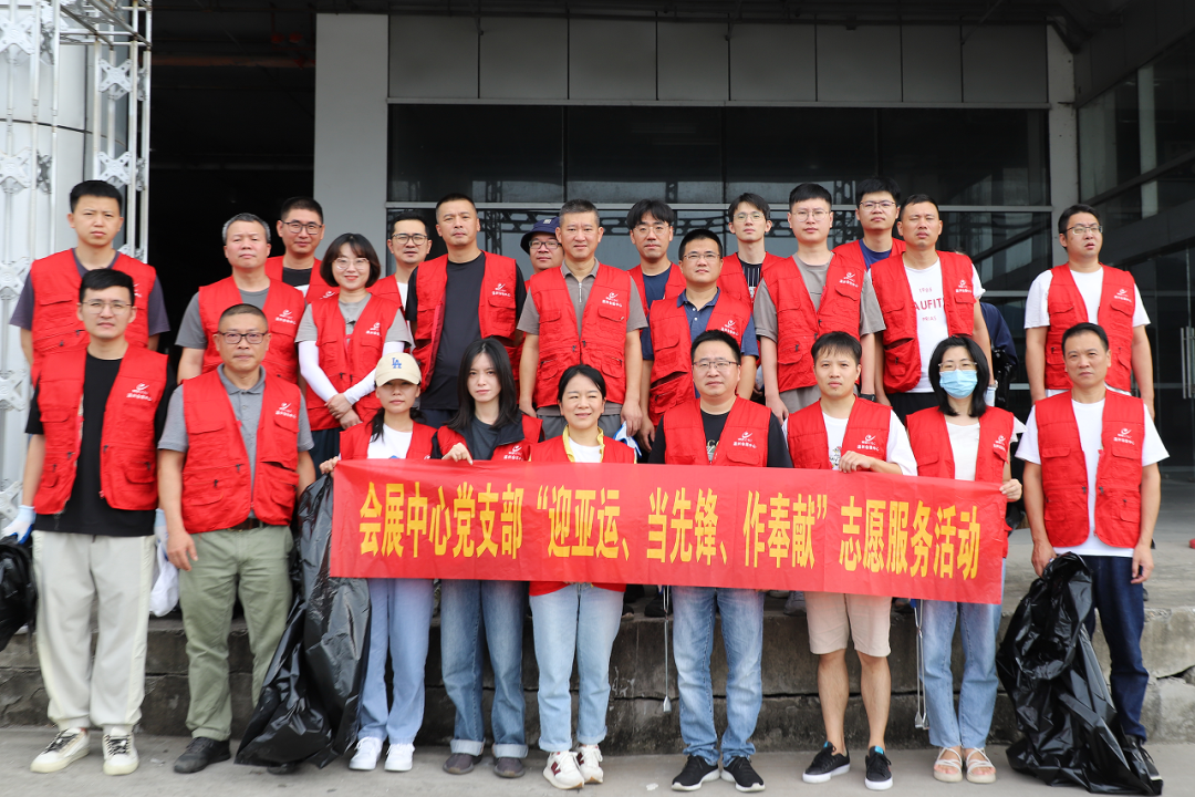 与此同时,会展中心党支部积极营造学思想、迎亚运、优服务、作先锋的浓厚氛围。号召全体党员带头示范随手做志愿,党员志愿者们分组行动主动清除路面以及会展展馆沿线草坪中的杂物垃圾以实际行动为亚运盛会出一份力。